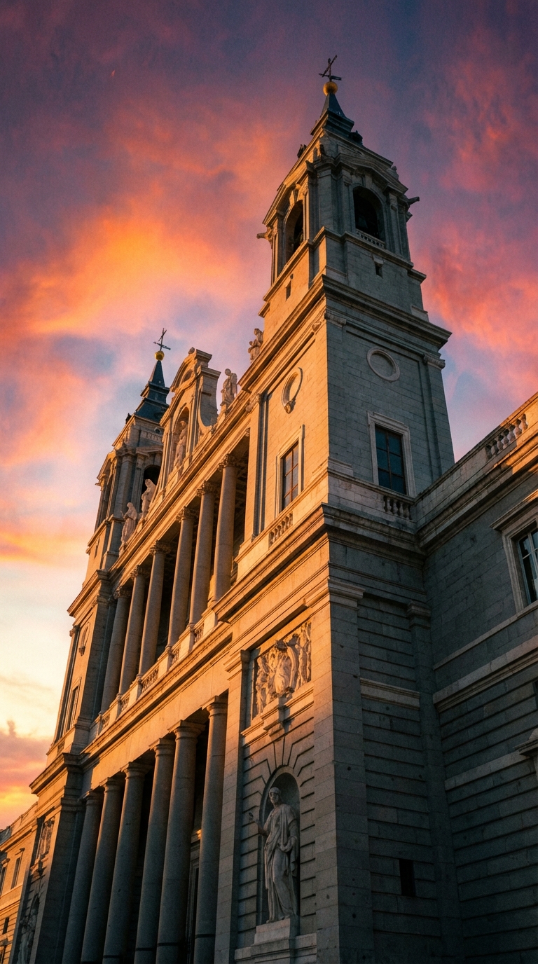 Strong rule: style --- Кинематографичный реализм ---. Еще один впечатляющий ракурс здания в лучах заходящего солнца. Свет теплый и драматичный, подчеркивает статусность.