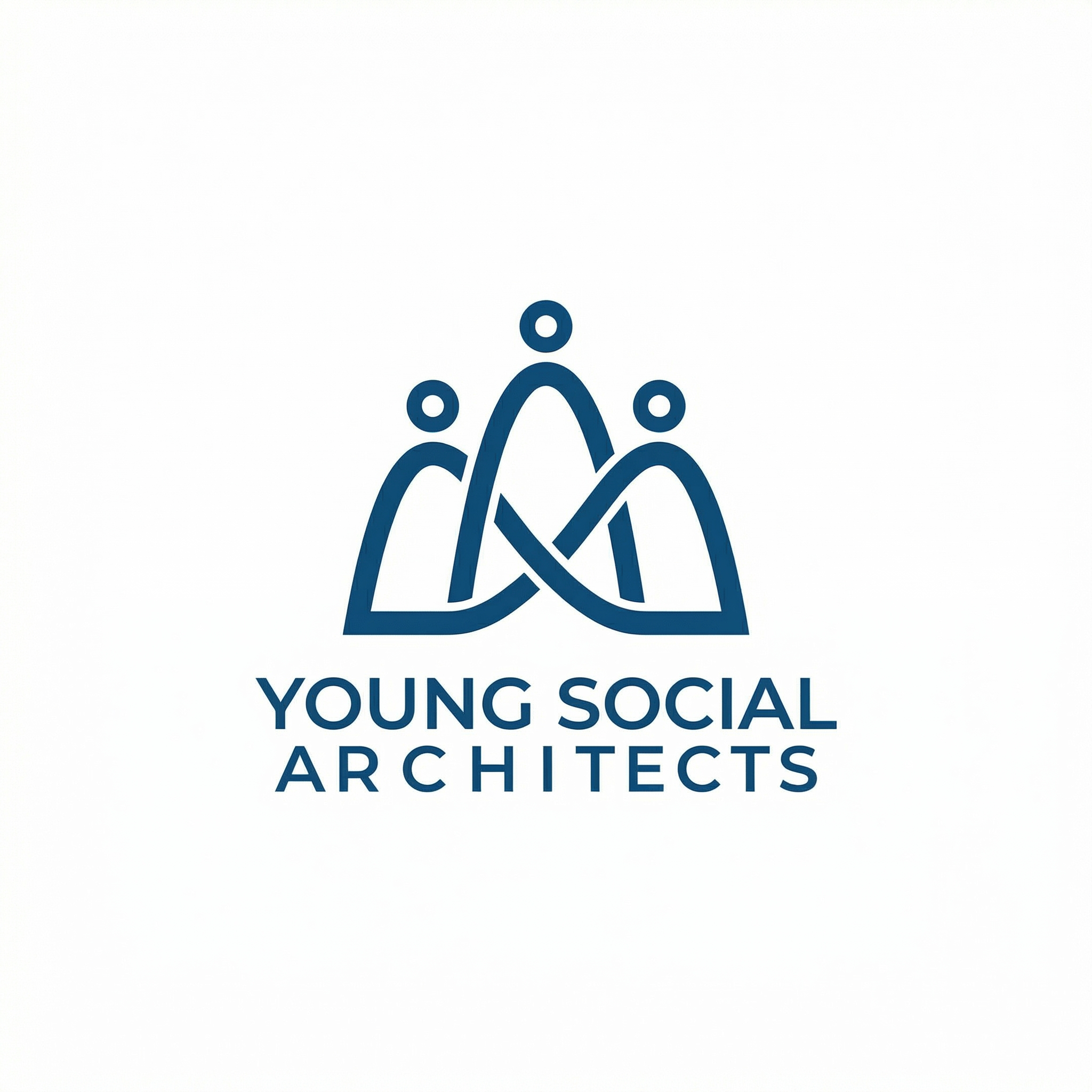 Создай дизайн минималистичного уникального логотипа на ровном белом фоне без теней. работай по референсам. логотип должен символизировать объединение людей и работу устремленную в будущее. логотип для проекта "Молодые социальные архитекторы" Логотип должен быть уникальным и минималистичным. знак в котором кроется смысл