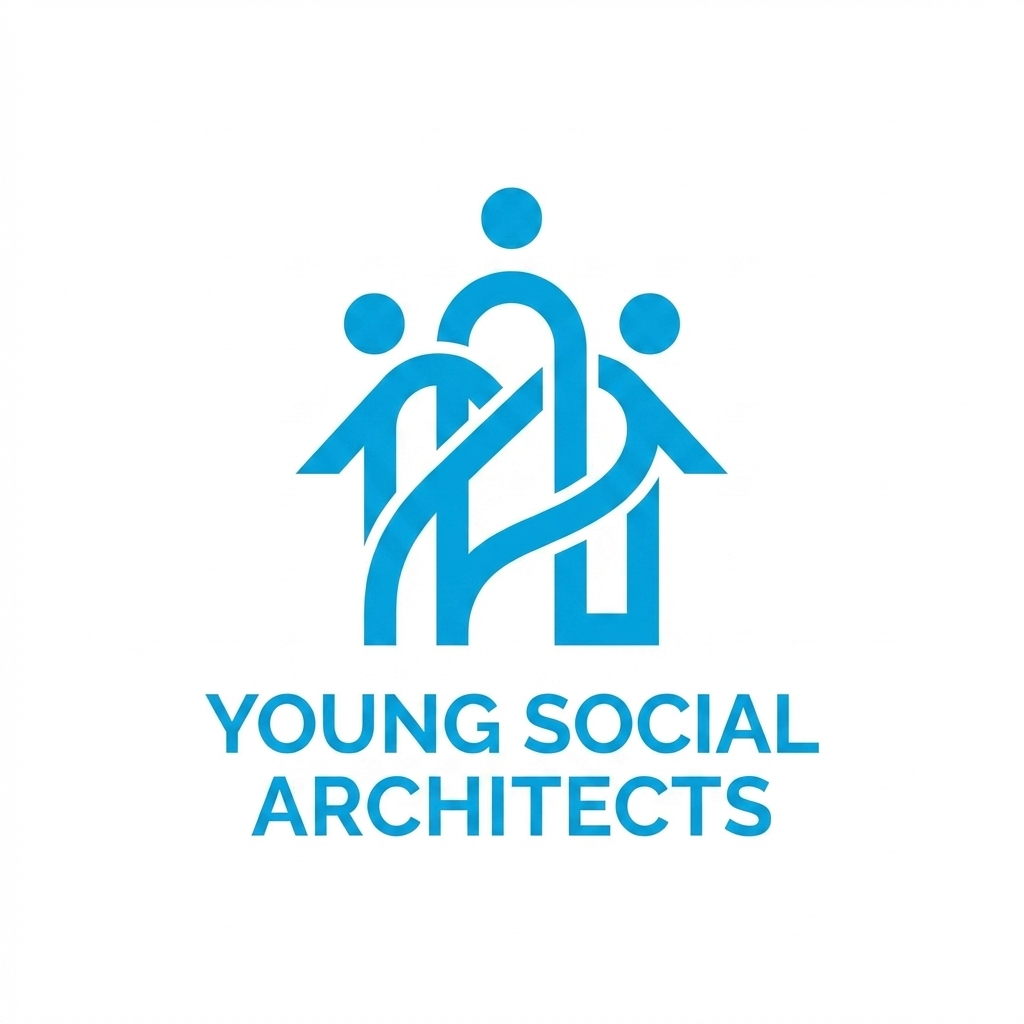Создай дизайн минималистичного уникального логотипа на ровном белом фоне без теней. работай по референсам. логотип должен символизировать объединение работу устремленную в будущее. логотип для проекта "Молодые социальные архитекторы" Логотип должен быть уникальным и минималистичным. знак в котором кроется смысл