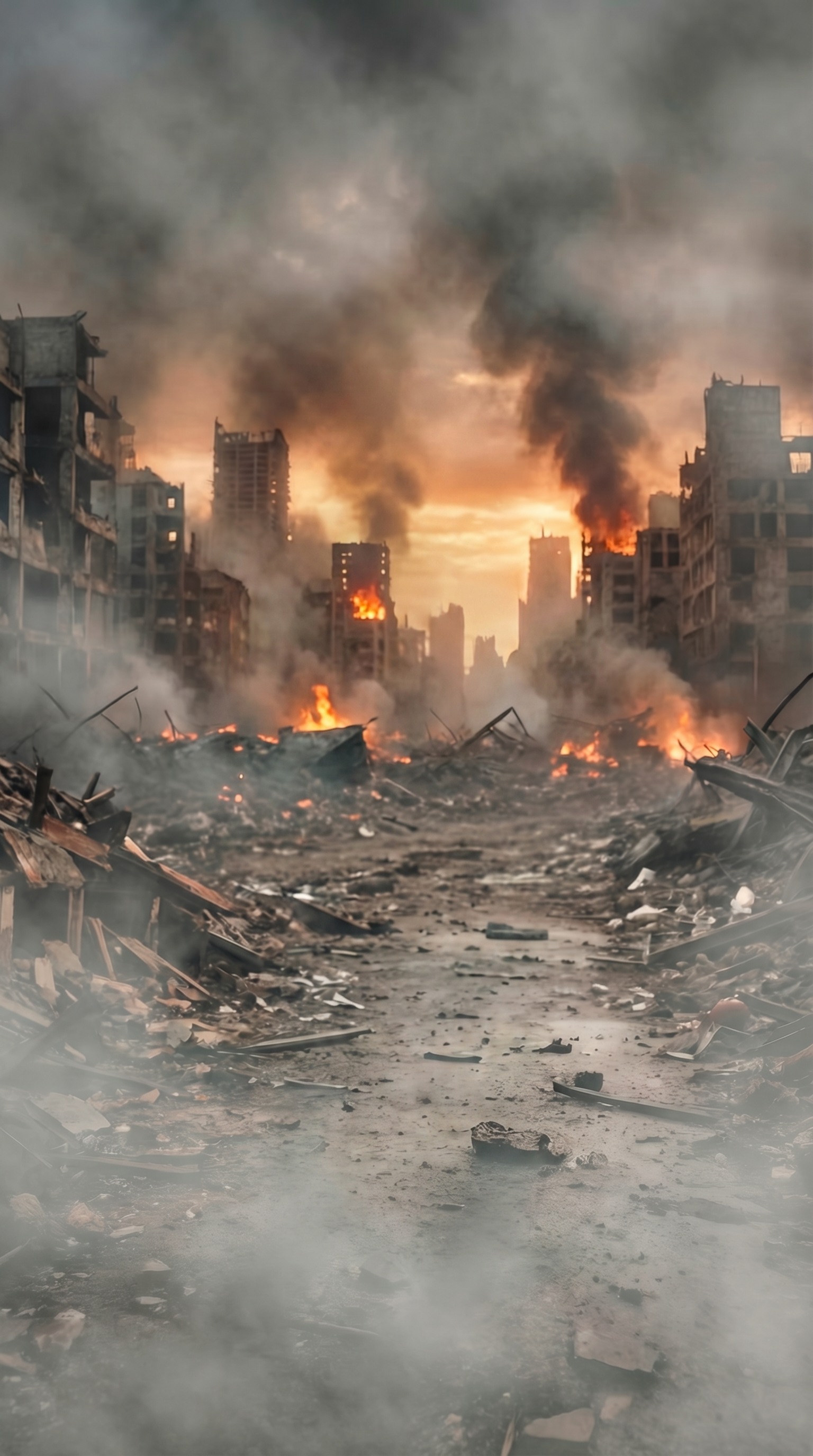 создай изображение только разрушенного вызванного города как на фото референсе но без человека. только сам город