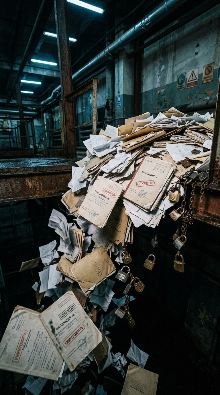 Art style: Cinematic Realism, Cyberpunk, Documentary, Dark.... Кинематографический реализм, огромная, хаотичная куча штампованных бумажных документов, папок и тяжёлых физических навесных замков, падающих в тёмную бездну. Никаких японских надписей. Действие происходит в России,если надписи и есть то только на русском языке. ━━━━━━━━━━━━━━━━━━━━━━━━━━━━━━━━━━━━━━ FINAL STYLE ENFORCEMENT (this is the authoritative rendering directive — it overrides any style wording elsewhere in the prompt): Render this image entirely in "Cinematic Realism, Cyberpunk, Documentary, Dark..." style. Match the lighting grammar, material response, colour science, level of realism / stylisation, line weight, and shading model typical of "Cinematic Realism, Cyberpunk, Documentary, Dark...". Keep the subject, composition, camera angle, lighting direction, and colour palette from the description above — but EVERY surface, skin, fabric, material, and environmental element must be rendered in the "Cinematic Realism, Cyberpunk, Documentary, Dark..." idiom, not in any other medium.