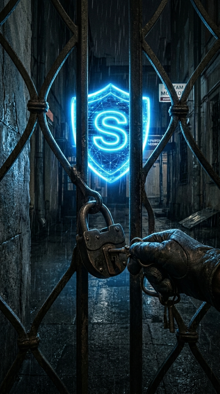 Art style: Cinematic Realism, Cyberpunk, Documentary, Dark.... Кинематографический реализм, ключ отпирающий тяжелый, темный навесной замок, на фоне которого ярко сияет щит с эмлемой S, щит излучает синий цвет открытый, неограниченный интернет-горизонт. щит находится в воздухе. Щит должен находится за раскрывающейся дверью,а не перед ней. Дверь представляет собой решетку. Никакого киберпанка!!!! Действия происходят в Москве. Щит в начале кадра находится за решеткой!!!!! ━━━━━━━━━━━━━━━━━━━━━━━━━━━━━━━━━━━━━━ FINAL STYLE ENFORCEMENT (this is the authoritative rendering directive — it overrides any style wording elsewhere in the prompt): Render this image entirely in "Cinematic Realism, Cyberpunk, Documentary, Dark..." style. Match the lighting grammar, material response, colour science, level of realism / stylisation, line weight, and shading model typical of "Cinematic Realism, Cyberpunk, Documentary, Dark...". Keep the subject, composition, camera angle, lighting direction, and colour palette from the description above — but EVERY surface, skin, fabric, material, and environmental element must be rendered in the "Cinematic Realism, Cyberpunk, Documentary, Dark..." idiom, not in any other medium.