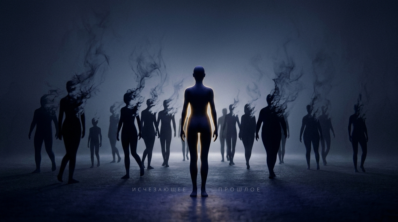 Art style: cinematic, minimalist, abstract, conceptual art. The echo-silhouettes behind the main figure begin to slowly dissolve, fading away into the deep indigo darkness like smoke. The past is disappearing. ━━━━━━━━━━━━━━━━━━━━━━━━━━━━━━━━━━━━━━ FINAL STYLE ENFORCEMENT (this is the authoritative rendering directive — it overrides any style wording elsewhere in the prompt): Render this image entirely in "cinematic, minimalist, abstract, conceptual art" style. Match the lighting grammar, material response, colour science, level of realism / stylisation, line weight, and shading model typical of "cinematic, minimalist, abstract, conceptual art". Keep the subject, composition, camera angle, lighting direction, and colour palette from the description above — but EVERY surface, skin, fabric, material, and environmental element must be rendered in the "cinematic, minimalist, abstract, conceptual art" idiom, not in any other medium. Character appearance reference (MUST match exactly): - Главный Силуэт: Strong rule: style --- cinematic, minimalist, abstract, conceptual art ---. An androgynous, featureless human silhouette made of deep, dark indigo material, sometimes glowing with a soft internal golden light. The form is elegant and minimalist. - Другие Силуэты: Strong rule: style --- cinematic, minimalist, abstract, conceptual art ---. Featureless human silhouettes of varying shapes and sizes, made of dark indigo or shadowy material. They are minimalist and symbolic.