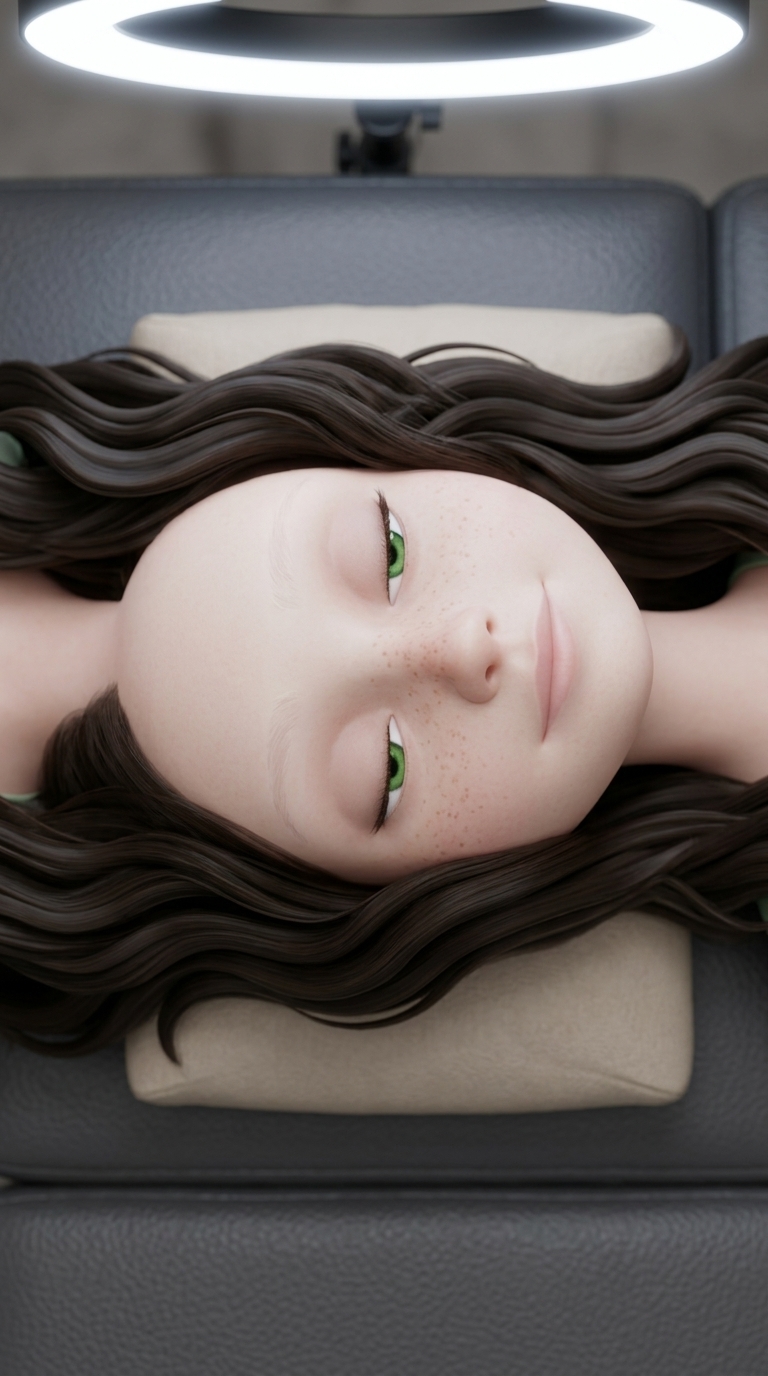 Strong rule: style --- Яркий, сюрреалистичный 3D-арт ---. Девушка, около 22 лет, с длинными волнистыми волосами необычного цвета (например, нежно-розового или бирюзового). У нее яркие, выразительные глаза. Одета в красочное, немного причудливое платье.