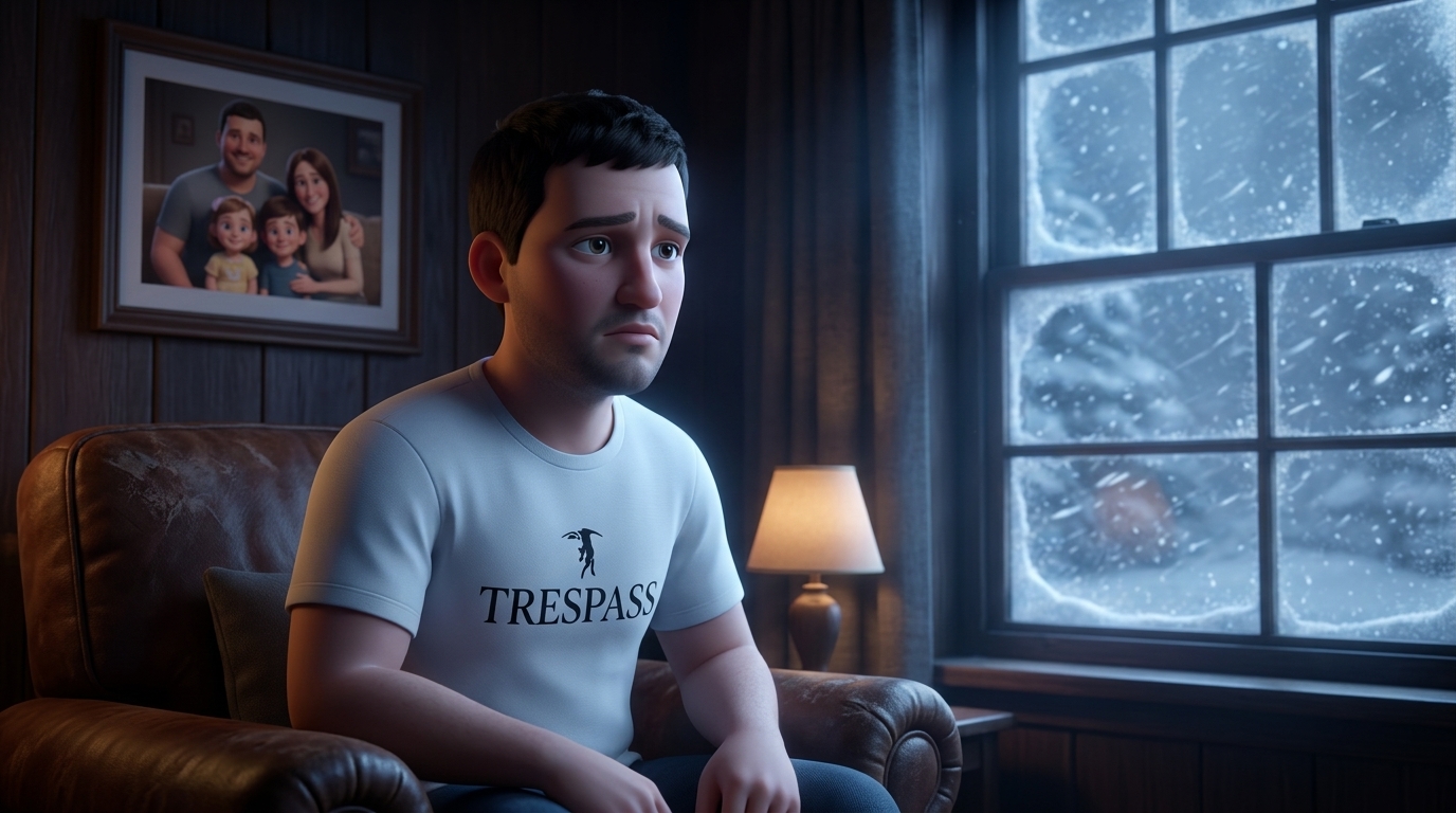 Art style: 3D Pixar. Миша сидит один в полутемной гостиной своего дома. Он смотрит на семейную фотографию на стене, но его взгляд пуст. За окном начинается метель, подчеркивая ее внутреннюю бурю. ━━━━━━━━━━━━━━━━━━━━━━━━━━━━━━━━━━━━━━ FINAL STYLE ENFORCEMENT (this is the authoritative rendering directive — it overrides any style wording elsewhere in the prompt): Render this image entirely in "3D Pixar" style. Match the lighting grammar, material response, colour science, level of realism / stylisation, line weight, and shading model typical of "3D Pixar". Keep the subject, composition, camera angle, lighting direction, and colour palette from the description above — but EVERY surface, skin, fabric, material, and environmental element must be rendered in the "3D Pixar" idiom, not in any other medium. Character appearance reference (MUST match exactly): - Миша: Мужчина лет 35 с овальным лицом и волевым подбородком, короткая темная стрижка и легкая щетина. У него светлая кожа и выразительные темные глаза. Телосложение среднее, плечи широкие. Одет в простую белую футболку с черным логотипом на груди. Выражение лица — чистый восторг и радость, рот широко открыт в ликующем крике. Он стоит, высоко подняв обе руки со сжатыми кулаками в жесте триумфа.