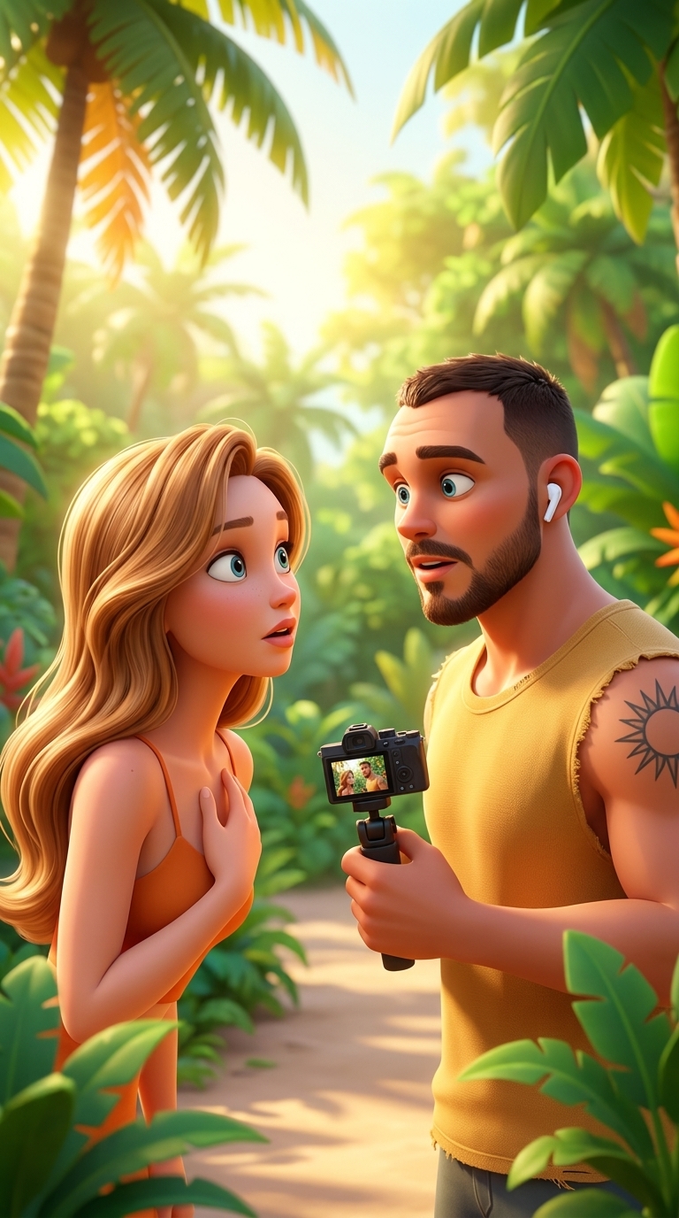 Art style: 3D Pixar. Яркая и динамичная нарезка кадров в стиле Pixar: Алёна и Богдан (созданные персонажи) едут на скутере по серпантину с видом на океан; они вместе смеются, пробуя экзотические фрукты на местном рынке; занимаются йогой на рассвете на пустынном пляже. Кадры пропитаны счастьем и беззаботностью. ━━━━━━━━━━━━━━━━━━━━━━━━━━━━━━━━━━━━━━ FINAL STYLE ENFORCEMENT (this is the authoritative rendering directive — it overrides any style wording elsewhere in the prompt): Render this image entirely in "3D Pixar" style. Match the lighting grammar, material response, colour science, level of realism / stylisation, line weight, and shading model typical of "3D Pixar". Keep the subject, composition, camera angle, lighting direction, and colour palette from the description above — but EVERY surface, skin, fabric, material, and environmental element must be rendered in the "3D Pixar" idiom, not in any other medium.