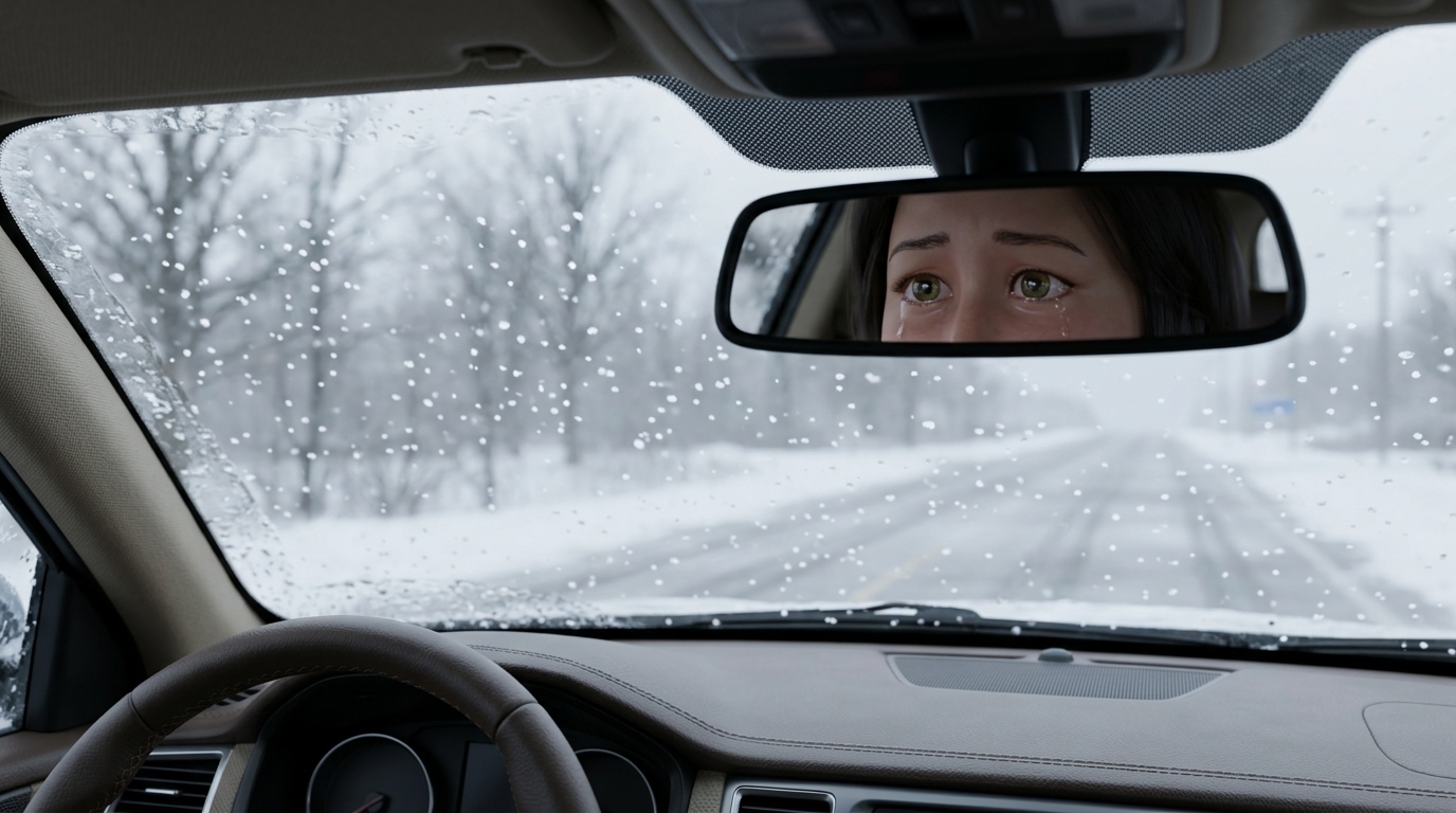 Art style: 3D Pixar. Машина стоит на пустынной обочине. Снежинки медленно и беззвучно падают на лобовое стекло. Мир за окном кажется искаженным и нереальным. В зеркале заднего вида отражаются глаза Анны, полные слез. ━━━━━━━━━━━━━━━━━━━━━━━━━━━━━━━━━━━━━━ FINAL STYLE ENFORCEMENT (this is the authoritative rendering directive — it overrides any style wording elsewhere in the prompt): Render this image entirely in "3D Pixar" style. Match the lighting grammar, material response, colour science, level of realism / stylisation, line weight, and shading model typical of "3D Pixar". Keep the subject, composition, camera angle, lighting direction, and colour palette from the description above — but EVERY surface, skin, fabric, material, and environmental element must be rendered in the "3D Pixar" idiom, not in any other medium. Character appearance reference (MUST match exactly): - Анна: Женщина средних лет, около 35 лет, с овальной формой лица и светлой кожей с теплым подтоном. У нее длинные, прямые темно-каштановые волосы с центральным пробором, спадающие ниже плеч. Глаза выразительного орехово-зеленого цвета под аккуратно очерченными темными бровями. Она одета в лаконичный черный свитер с круглым вырезом. Выражение лица спокойное и приветливое, с легкой, естественной улыбкой и прямым, открытым взглядом в объектив. Телосложение стройное, поза фронтальная, подчеркивающая дружелюбие и уверенность в себе.