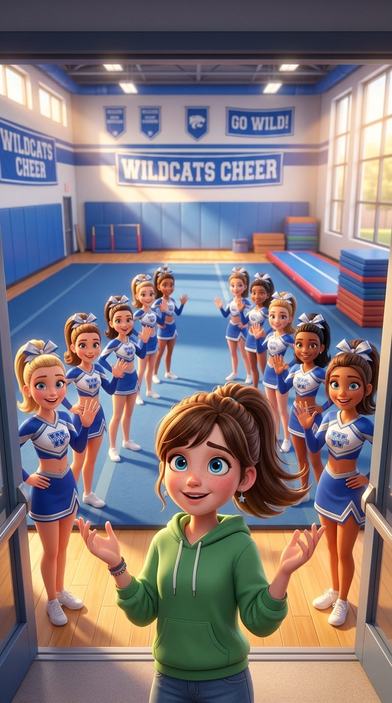 Эффектный крупный план Лидии, идущей по центру коридора. Её рыжие волосы развеваются в такт шагам, а белая прядь контрастно выделяется на фоне рыжих локонов. Один карий глаз и один зеленый смотрят вперед с непоколебимой уверенностью. Вокруг неё словно образуется ореол света, выделяющий её из толпы. Цветовая палитра насыщена теплыми золотистыми, оранжевыми и изумрудными оттенками. Атмосфера наполнена энергией и легкостью. Ракурс взят немного снизу вверх, что подчеркивает её высокий социальный статус в школе. Character appearance reference (MUST match exactly): - Лидия: Strong rule: style --- Реалистичный кинематографичный стиль ---. Очаровательная девушка-подросток с длинными, густыми огненно-рыжими волосами, среди которых выделяется одна яркая белоснежная прядь у самого лица. Её глаза разного цвета: левый — глубокий карий, правый — пронзительный изумрудно-зеленый. Она одета в стильную темно-синюю школьную куртку с нашивками и модные аксессуары. На её лице сияет уверенная и открытая улыбка. Фон — залитый солнцем школьный двор с зелеными деревьями. Свет падает сбоку, подчеркивая блеск волос и необычную гетерохромию глаз, создавая образ яркой и незабываемой личности.