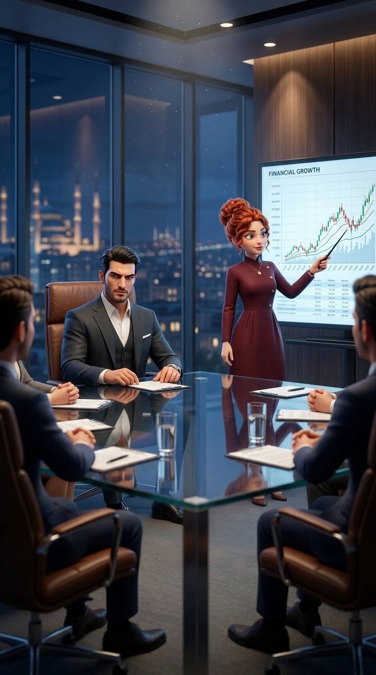 Art style: 3d, pixar, Cinematic Drama, High-end Turkish TV show style.... Cinematic shot. Kerem, a handsome man in a sharp dark blue suit, stepping out of a luxury black car in front of a massive glass skyscraper. Bodyguards and assistants are rushing around him. Cold, corporate color palette. ━━━━━━━━━━━━━━━━━━━━━━━━━━━━━━━━━━━━━━ FINAL STYLE ENFORCEMENT (this is the authoritative rendering directive — it overrides any style wording elsewhere in the prompt): Render this image entirely in "3d, pixar, Cinematic Drama, High-end Turkish TV show style..." style. Match the lighting grammar, material response, colour science, level of realism / stylisation, line weight, and shading model typical of "3d, pixar, Cinematic Drama, High-end Turkish TV show style...". Keep the subject, composition, camera angle, lighting direction, and colour palette from the description above — but EVERY surface, skin, fabric, material, and environmental element must be rendered in the "3d, pixar, Cinematic Drama, High-end Turkish TV show style..." idiom, not in any other medium. Character appearance reference (MUST match exactly): - Керем: Мужчина около 30-35 лет с мужественными чертами лица, волевым подбородком и аккуратной короткой щетиной. У него смуглая кожа, густые темные волосы, уложенные в стильную прическу, и глубокие карие глаза. Телосложение атлетичное, рост выше среднего. Он одет в безупречный темно-серый костюм-тройку, состоящий из пиджака, жилета и брюк, с белоснежной рубашкой с открытым воротом и белым платком в кармане. На левом запястье — массивные серебристые часы. Выражение лица серьезное и уверенное, позы демонстрируют спокойную силу и профессионализм.