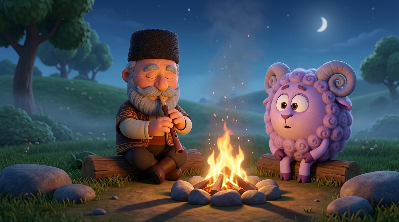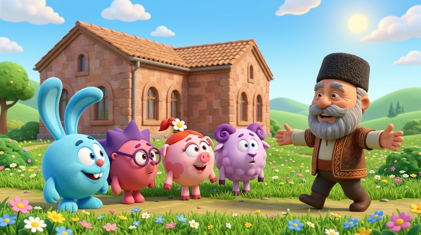 Ashot, a curious 10-year-old boy, and his younger sister Lusine, a 7-year-old dreamer, are bored in their cozy living room in Yerevan. Their wise grandfather, a keeper of family traditions, holds an ancient, mysterious map, proposing a magical journey. The style is a vibrant 2D animation with elements of Armenian national ornaments. The atmosphere is warm and full of anticipation.