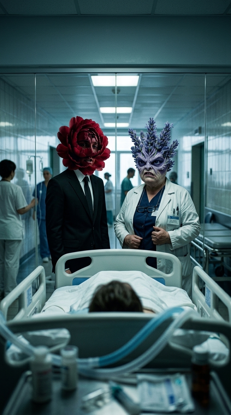Art style: Modern Cinematic Drama, TV Series, High Quality.... Дорога, яркий свет фар дорогого автомобиля освещает бегущую испуганную Розу. Машина резко тормозит в нескольких сантиметрах от нее. Роза падает в обморок на мокрый асфальт. ━━━━━━━━━━━━━━━━━━━━━━━━━━━━━━━━━━━━━━ FINAL STYLE ENFORCEMENT (this is the authoritative rendering directive — it overrides any style wording elsewhere in the prompt): Render this image entirely in "Modern Cinematic Drama, TV Series, High Quality..." style. Match the lighting grammar, material response, colour science, level of realism / stylisation, line weight, and shading model typical of "Modern Cinematic Drama, TV Series, High Quality...". Keep the subject, composition, camera angle, lighting direction, and colour palette from the description above — but EVERY surface, skin, fabric, material, and environmental element must be rendered in the "Modern Cinematic Drama, TV Series, High Quality..." idiom, not in any other medium. Character appearance reference (MUST match exactly): - Роза: Strong rule: style --- Cinematic High Society Drama, elegant, moody, m... ---. Strong rule: style --- Cinematic High Society Drama, elegant, moody, m... ---. Strong rule: style --- Cinematic High Society Drama, elegant, moody, m... ---. Beautiful young woman with natural makeup, warm smile, wavy brown hair, wearing a simple but elegant flowing dress in soft rose tones, gentle sunlight illuminating her face. Вместо головы цветок розы, с глазами и ртом, анимированный персонаж. Одежду лучше сделать попроще - Пион: Молодой мужчина атлетичного телосложения с овальным лицом и светлой кожей, чья голова полностью обрамлена лепестками гигантского темно-красного пиона. Его карие глаза смотрят прямо, а губы слегка приоткрыты в спокойном и загадочном выражении. Волосы полностью скрыты под пышным цветком. Он одет в элегантный темно-серый костюм с едва заметным красным цветочным узором, дополненный белой рубашкой и черным галстуком. Главная особенность — сюрреалистичное слияние человеческого лица с живым растением, где лепестки заменяют волосы и обрамляют черты лица, создавая образ цветочного гибрида.