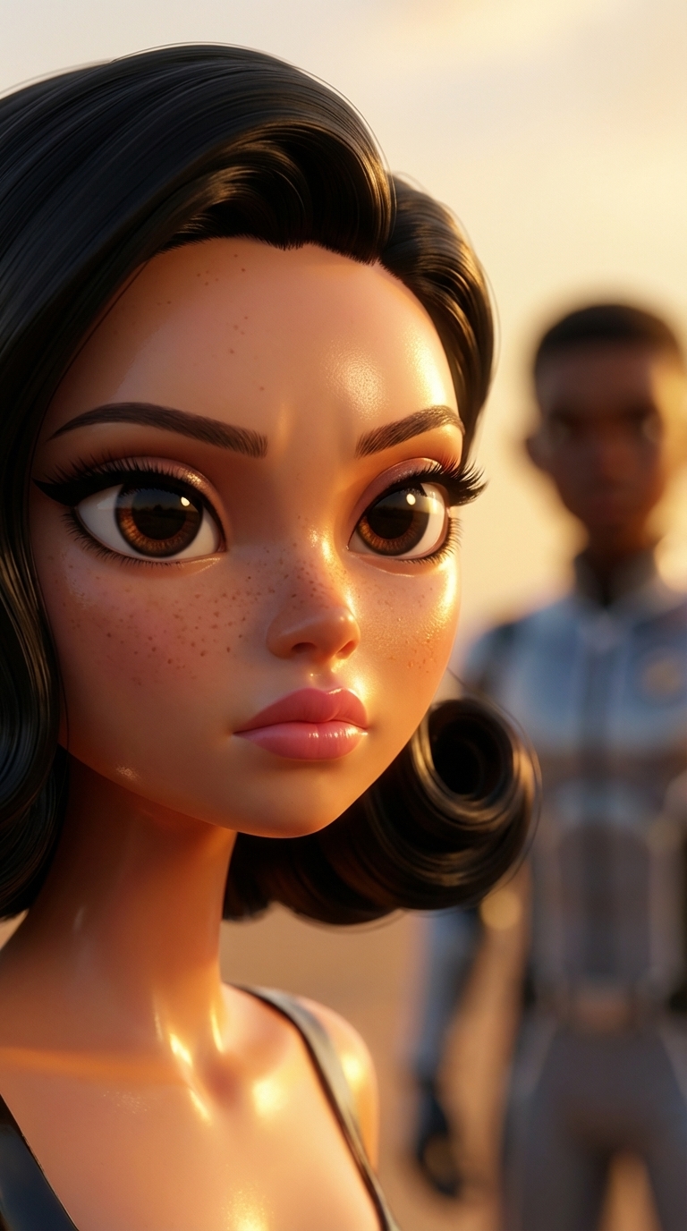 Strong rule: style --- Глянцевый кинематографичный ---. Крупный план лица Марины. Ее глаза горят решимостью, губы плотно сжаты. Свет пад...