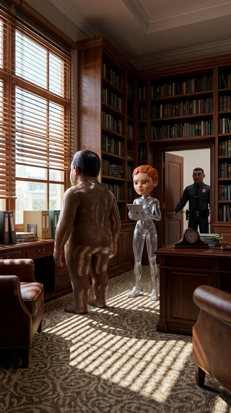 Strong rule: style --- Глянцевый кинематографичный ---. Кабинет директора школы с высокими потолками и книжными шкафами. Директор стоит ...