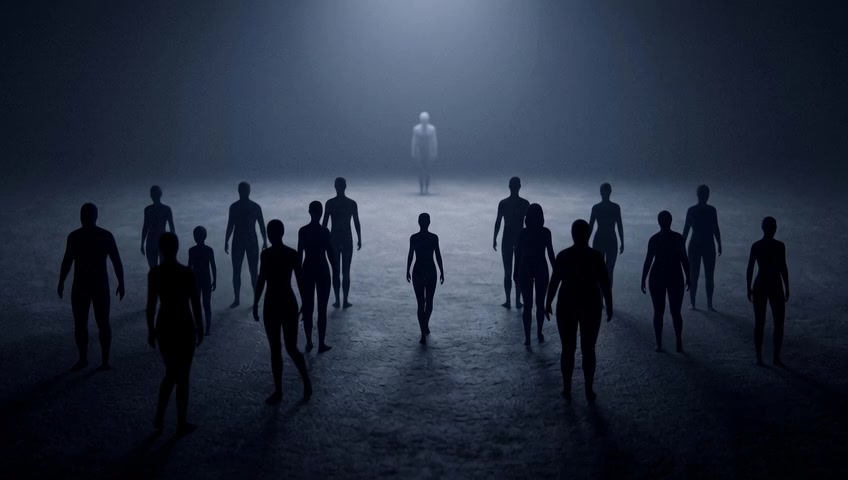 The trigger-figure fades in slowly. It stands still, its presence alone creating a palpable tension in the quiet space. No background mu...