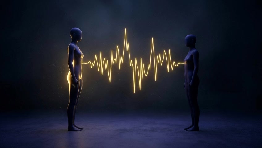 A thin, dark line animates across the silhouette's mouth area, a simple but powerful symbol of being unable to speak one's truth. No bac...