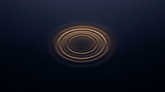 Cinematic top-down shot of a vast, dark indigo water surface. The water is p...