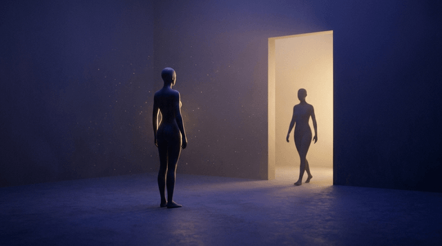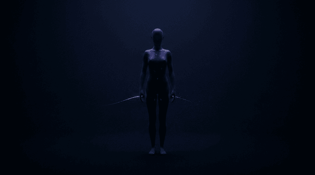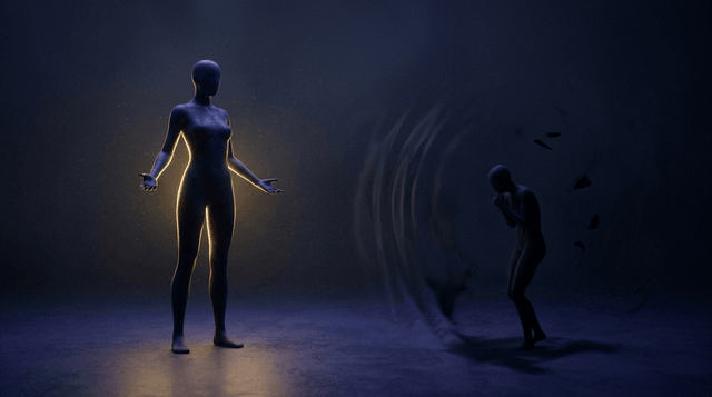Another silhouette enters the space. This time, the main silhouette's postur...