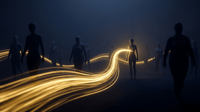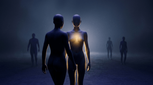 A beautiful, abstract shot. A wave of golden light travels from one silhouet...