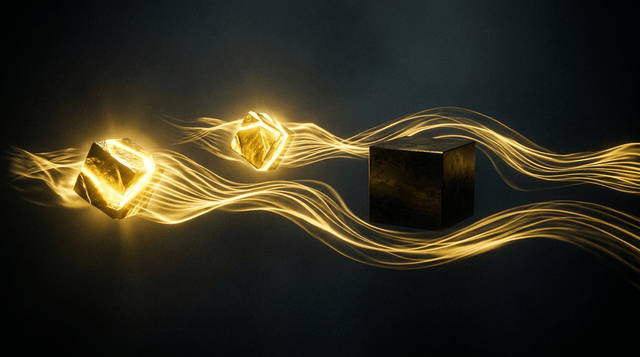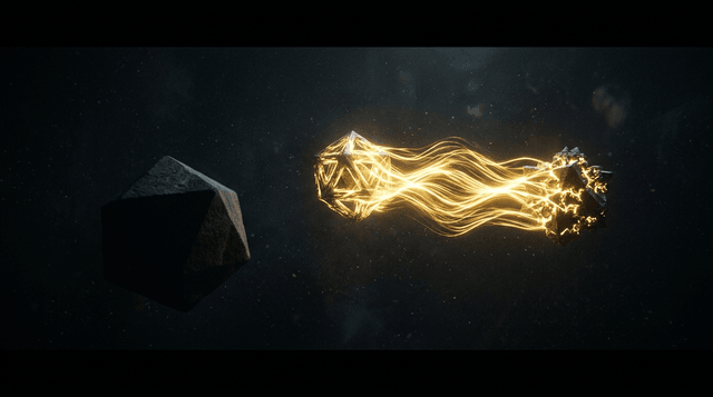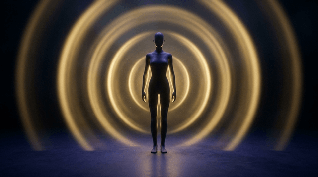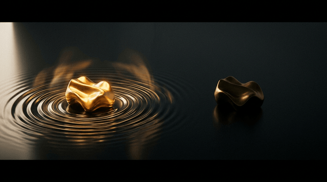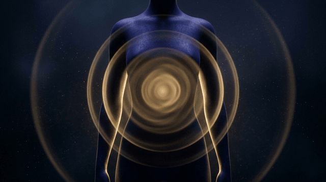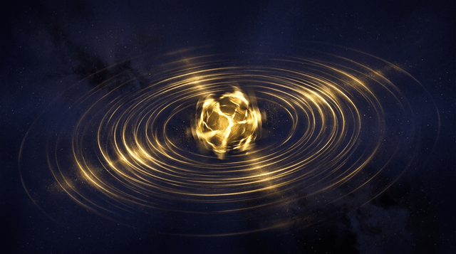 The golden object begins to vibrate. Concentric waves of golden light and en...