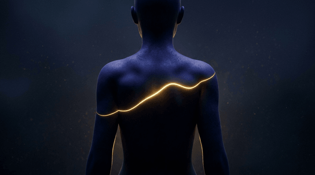 Shot focusing on the shoulders and upper back of a silhouette. The shoulders...