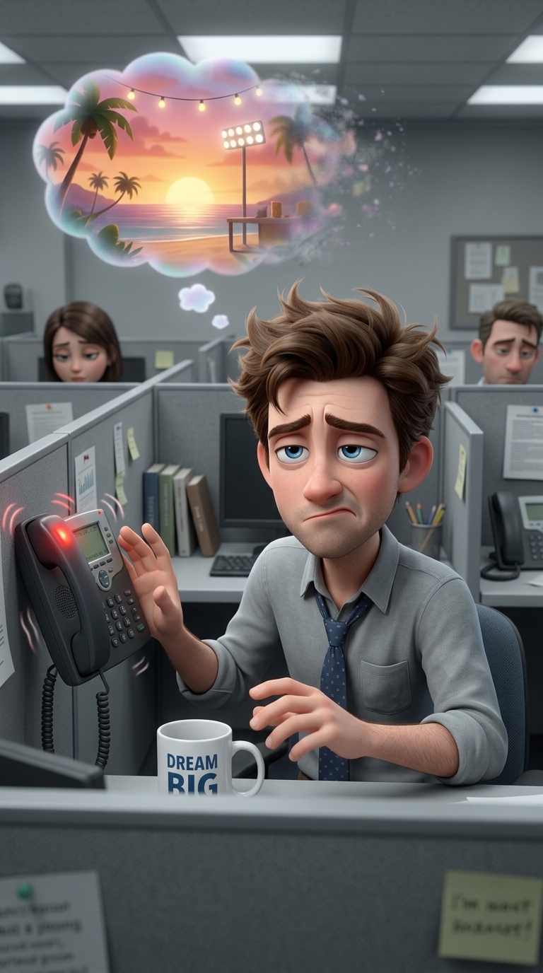 Кевин резко возвращается в реальность. Он все еще в своей кабинке, телефон надрывается. Его мечтательное выражение ...