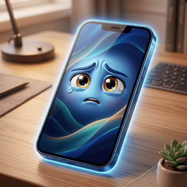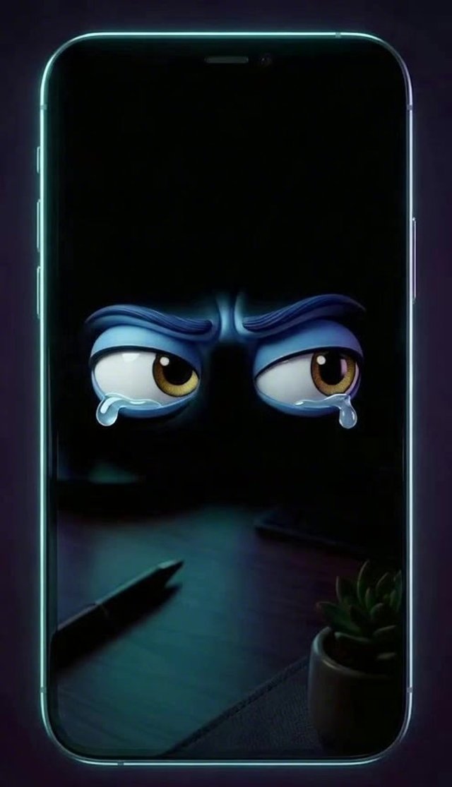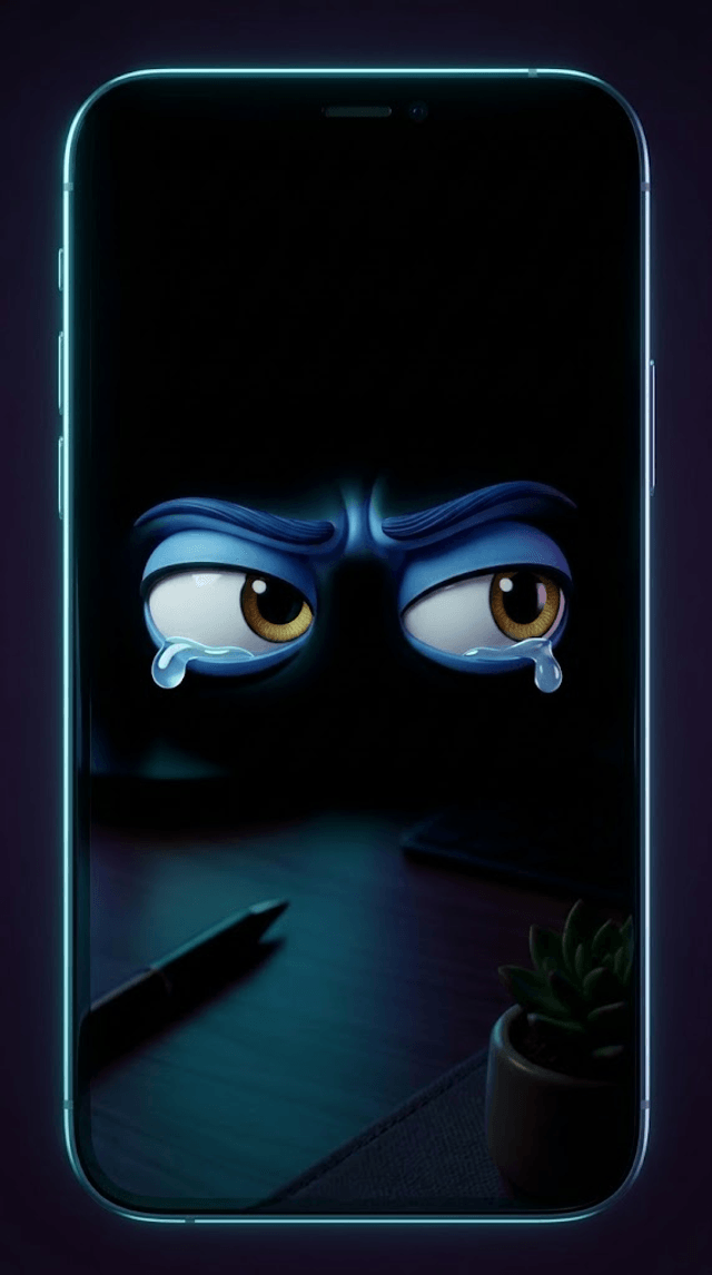 Art style: 3D Pixar. Экстремально крупный план экрана смартфона, занимающий весь кадр. На черном глянцевом стекле отображаются два ярко-...