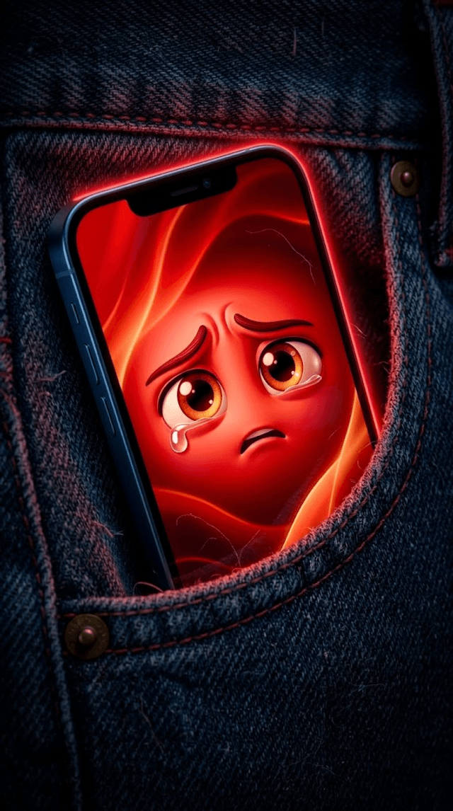 Strong rule: style --- 3D Pixar ---. Внутренняя часть кармана джинсов, макросъемка текстуры грубой синей ткани. Смартфон светится изнутри...