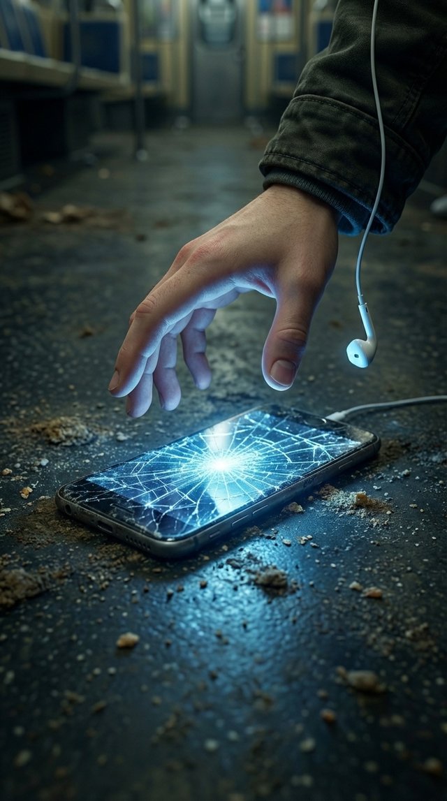 Strong rule: style --- 3D Pixar ---. Экран телефона крупным планом с текстом поверх застывшего видео. Плоский фронтальный ракурс, строгая...