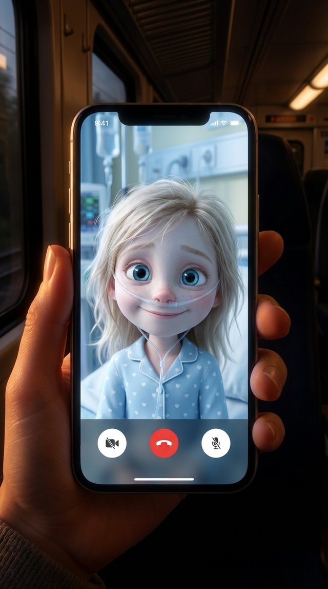 Strong rule: style --- 3D Pixar ---. Больничная палата, видимая через рамки экрана смартфона. Крупный план интерфейса телефона. Холодный ...