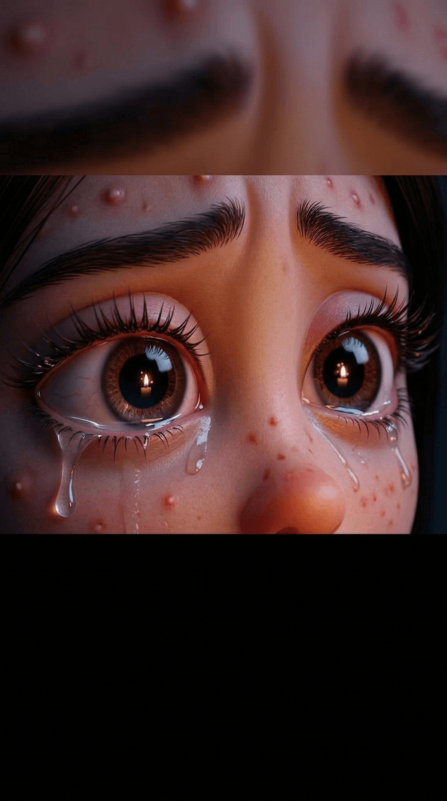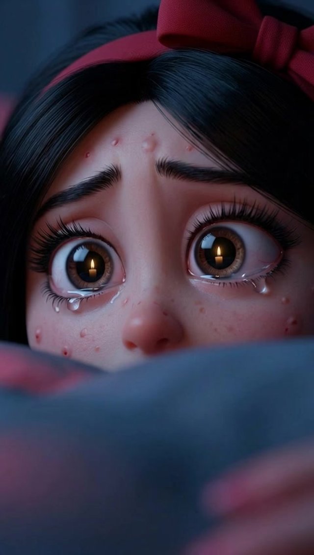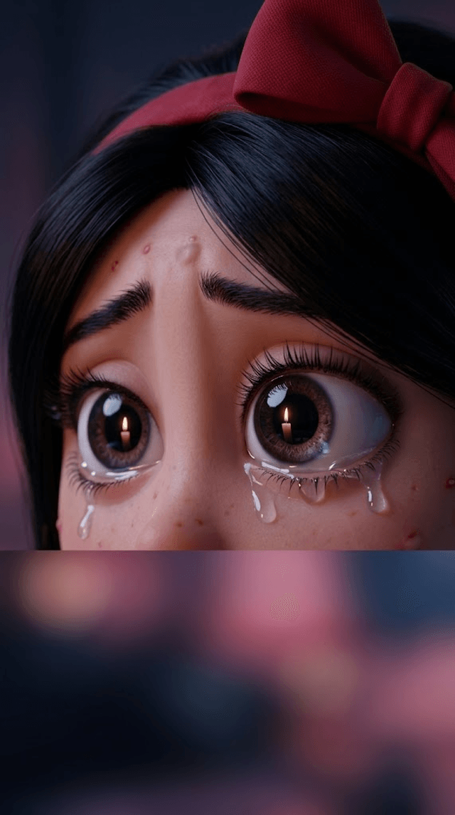 Strong rule: style --- 3D Pixar ---. Экстремальный крупный план глаз Вагинессы в стиле Pixar, в которых стоят слезы. В зрачках отражается...