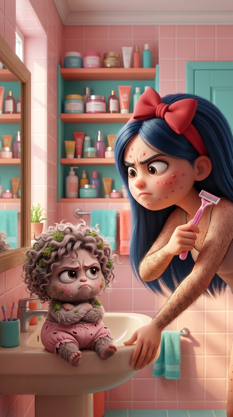 Вагинеса тяжело вздыхает и подносит бритву к ноге, в то время как Матильда демонстративно отворачивается и закрывает глаза пушистыми лапк...