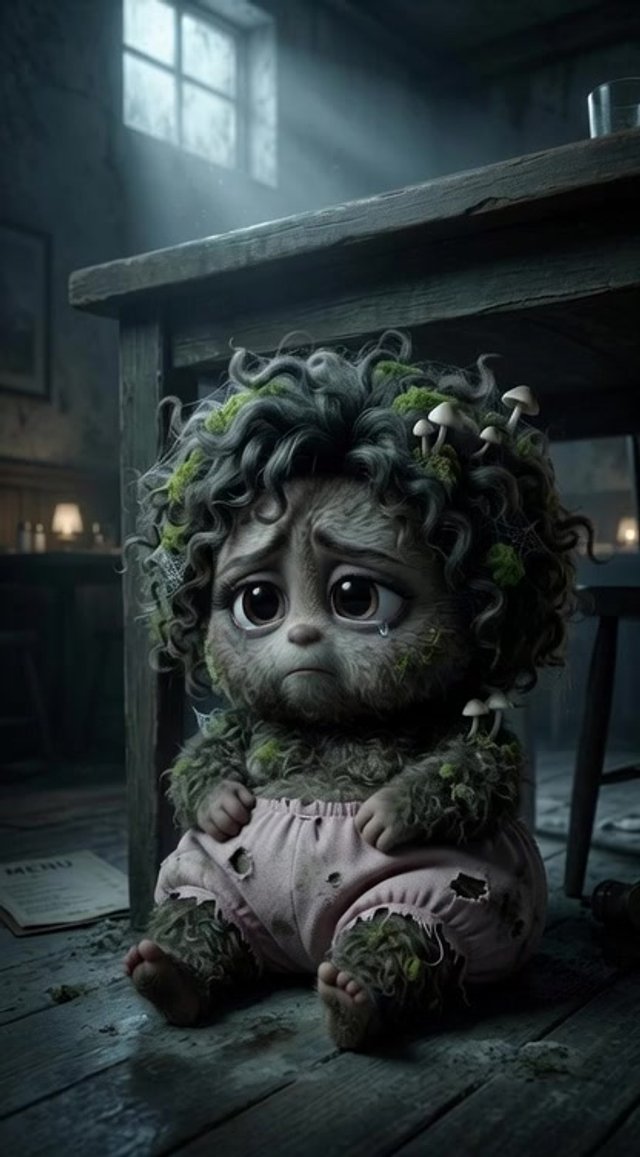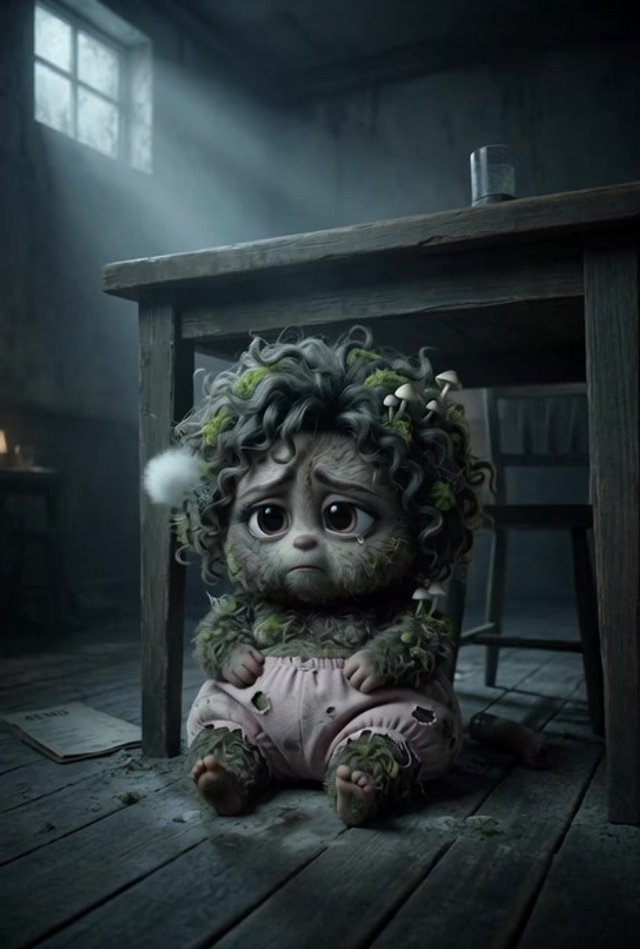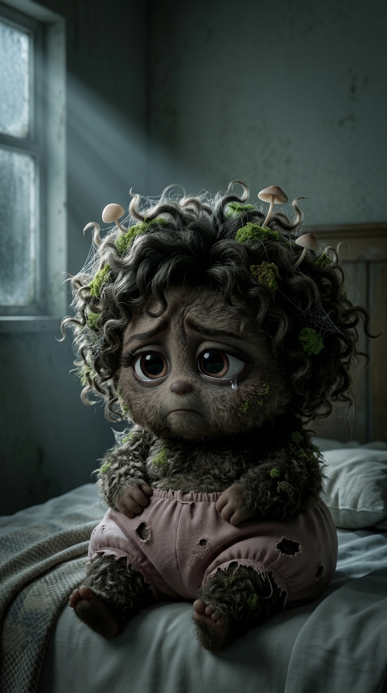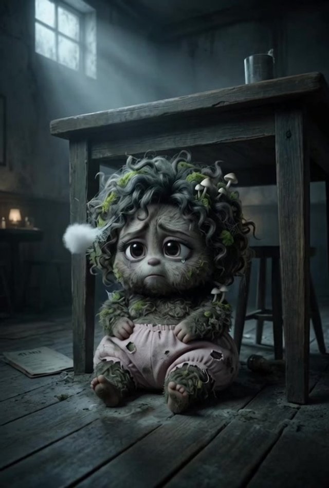 Матильда медленно проводит одной лапкой по своей спутанной шерстке, на которой колышутся ворсинки мха. а другой рукой снимает паутину с г...