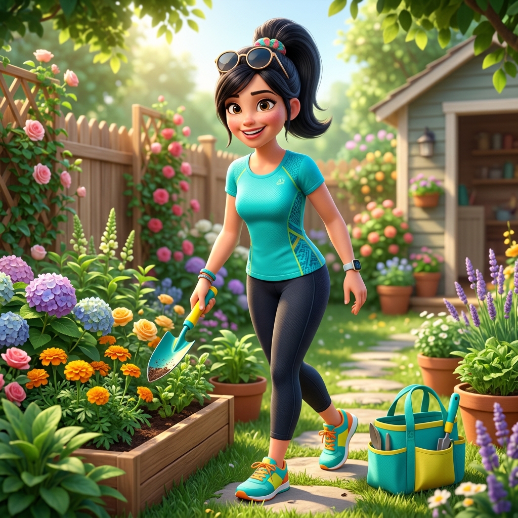 Strong rule: style --- 3D Pixar ---. Стиль анимации Pixar, 3D-рендер. Женщина 40 лет, выглядит бодро и современно. На ней яркая спортивна...