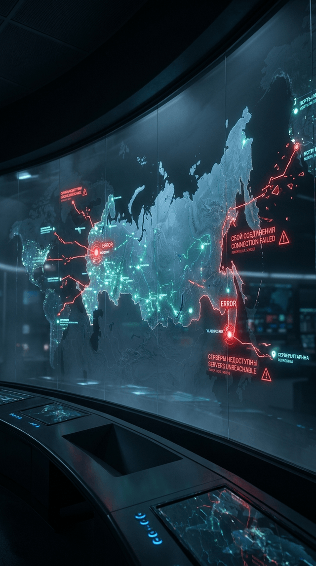 Красные предупреждающие маркеры быстро пульсируют по экрану, показывая сбои соединения.