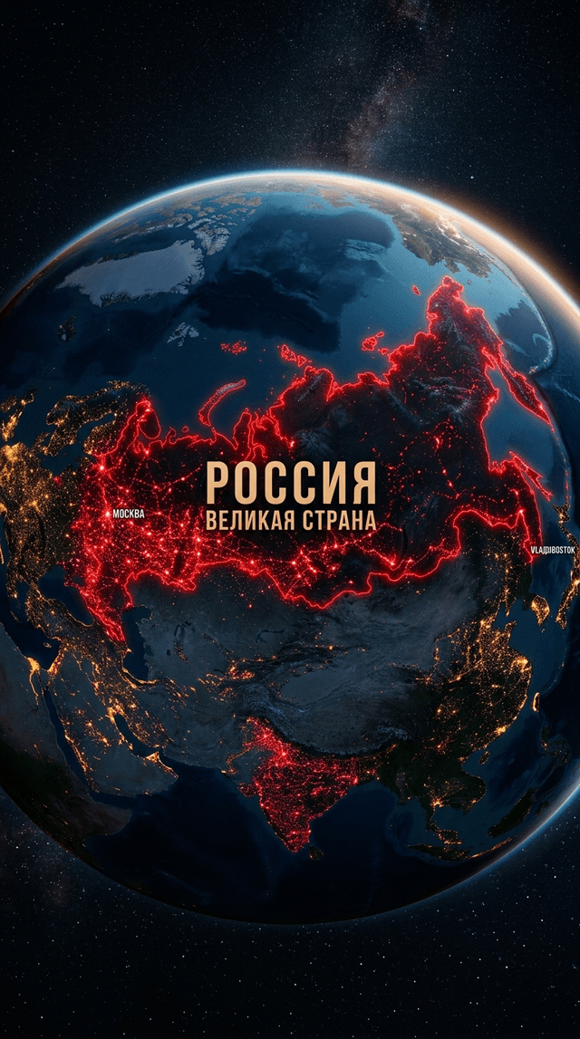 Драматичный план Земного шара из космоса на котором выделяется Россия мерцают красные огни. Если есть надп...