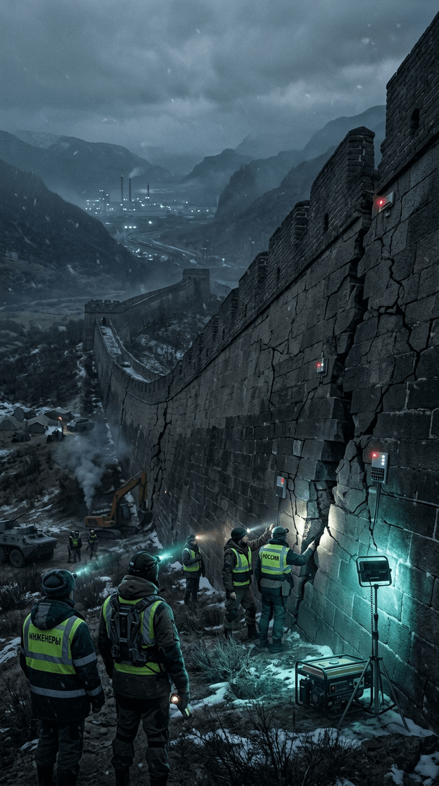 В духе кинореализма, массивная, внушительная стена , напоминающая Великую...