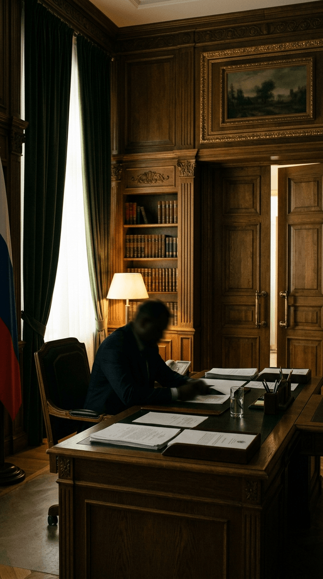 В роскошном правительственном кабинете с массивными дубовыми дверями и кл...
