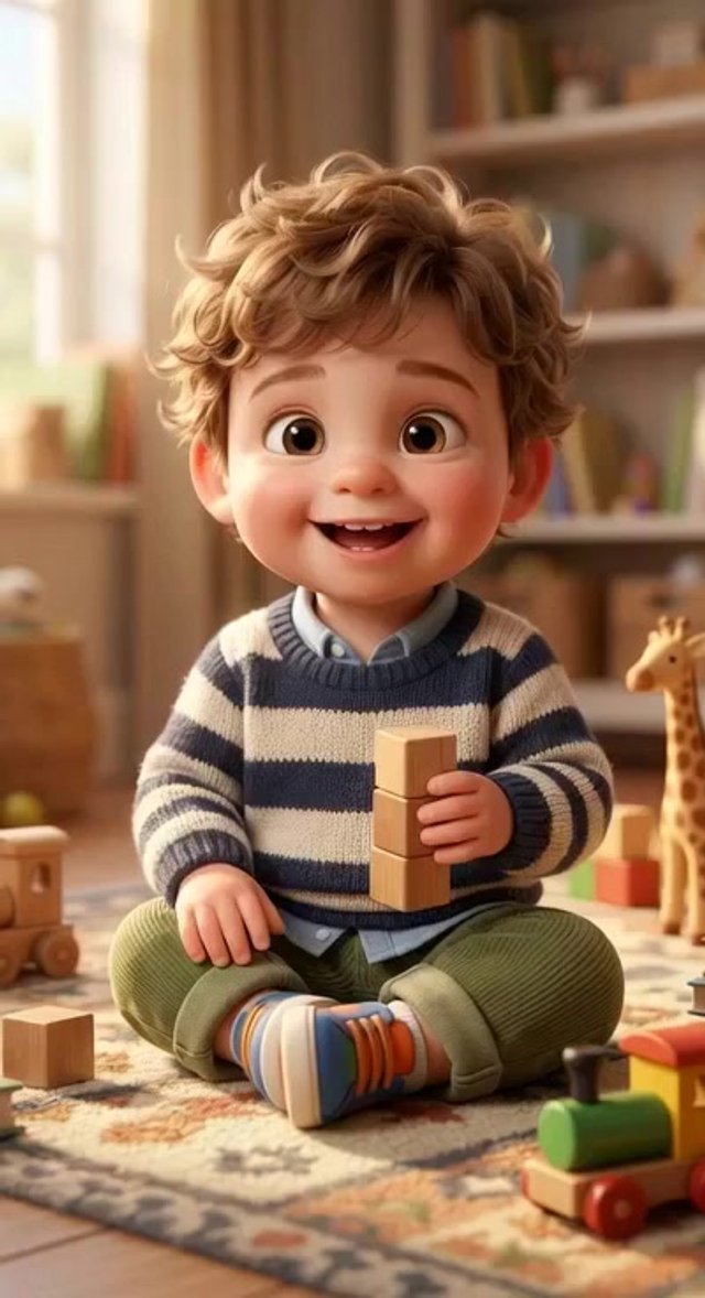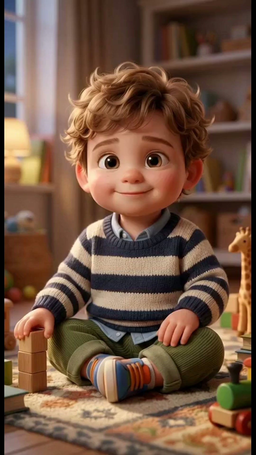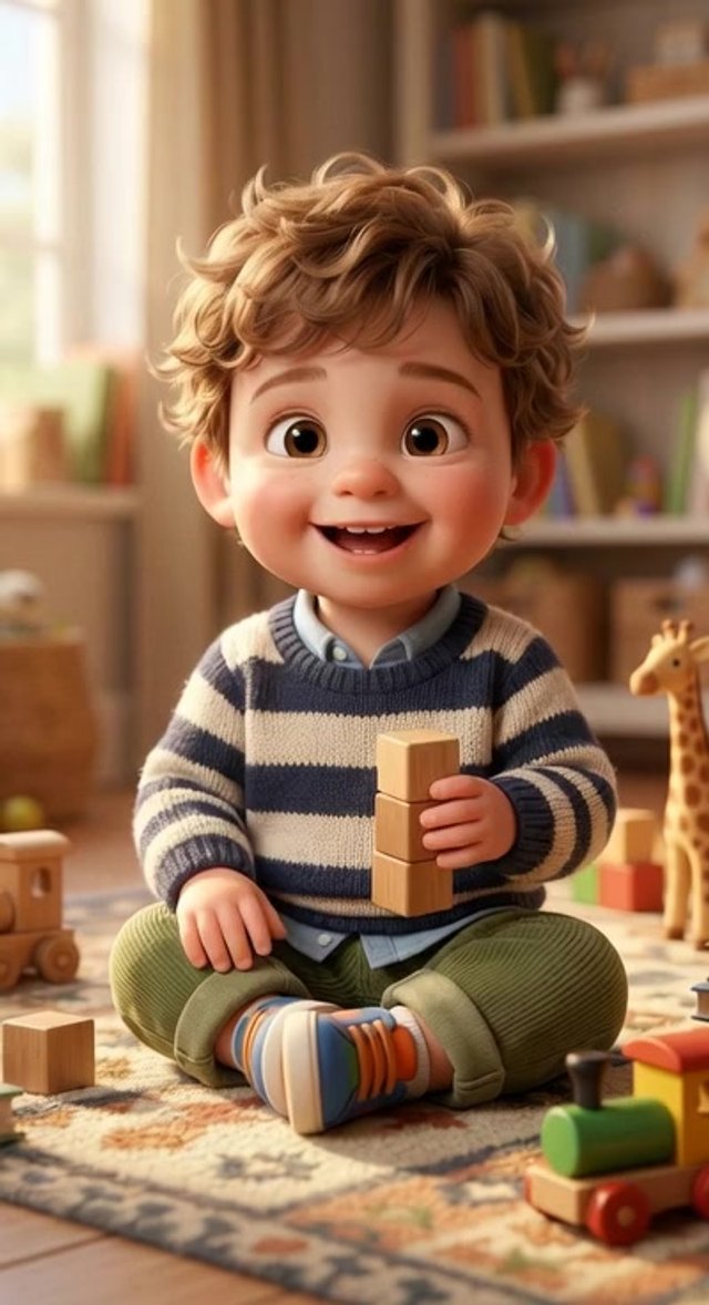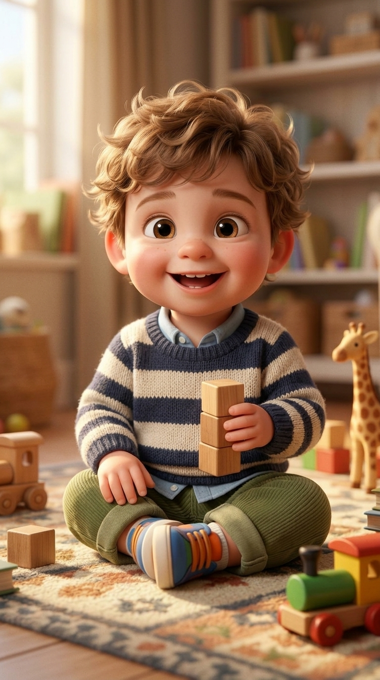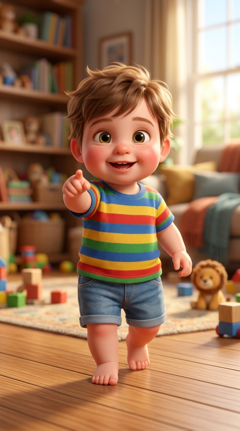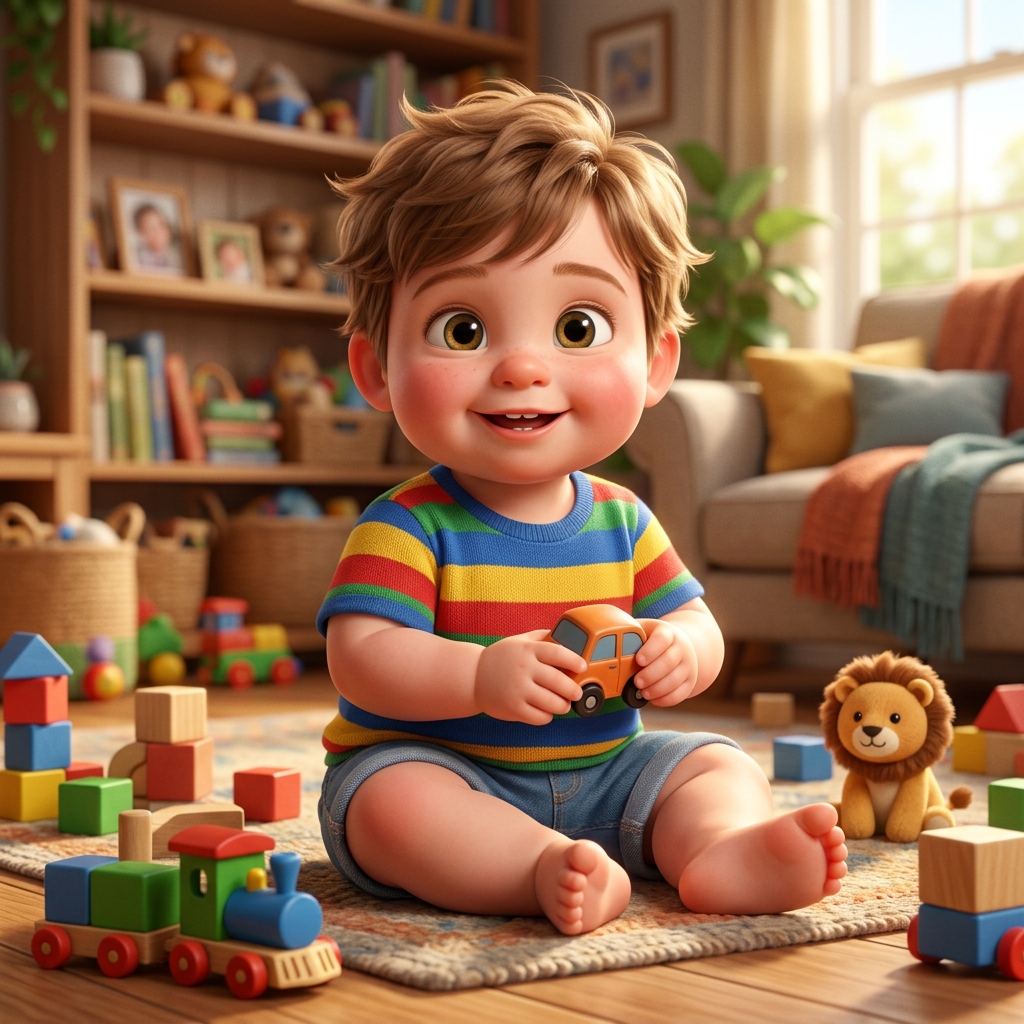 Strong rule: style --- 3D Pixar Animation, cinematic lighting, masterp... ---. A cute 1.5-year-old toddler boy, big expressive eyes, chub...