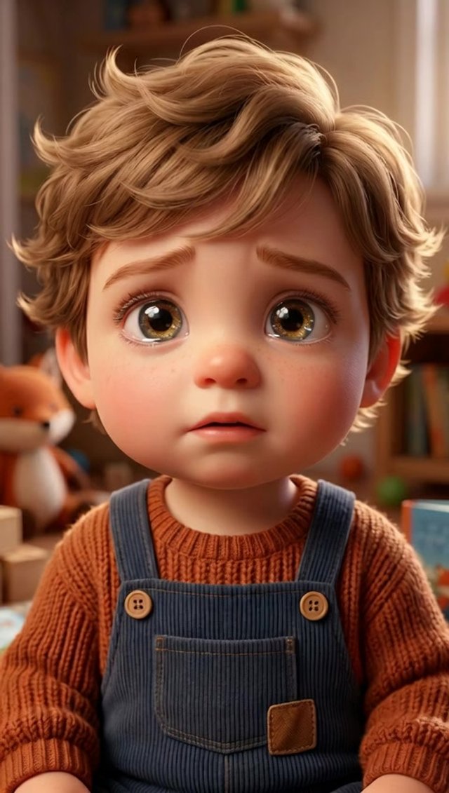 Strong rule: style --- 3D Pixar animation, cinematic lighting, highly ... ---. Cute 2-year-old toddler boy, big expressive eyes, soft che...