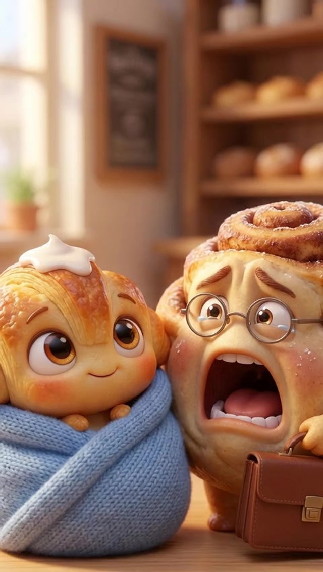 Dramatic fast zoom-out to reveal the angry mother and the smug Baklava. Aggressive camera shake.