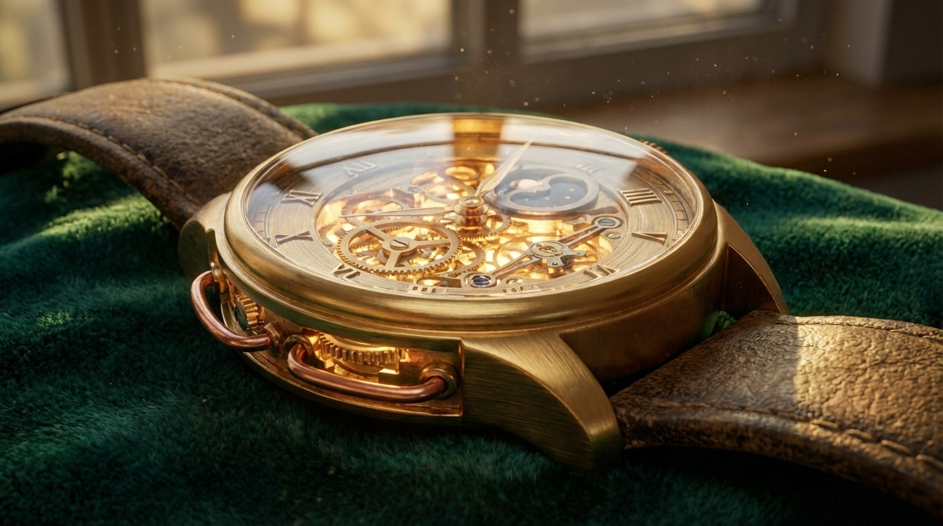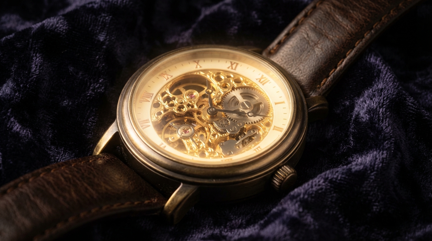 Strong rule: style --- Macro Photorealism, Steampunk, Cinematic Lighti... ---. The luxury mechanical watch on dark velvet, exactly as in ...