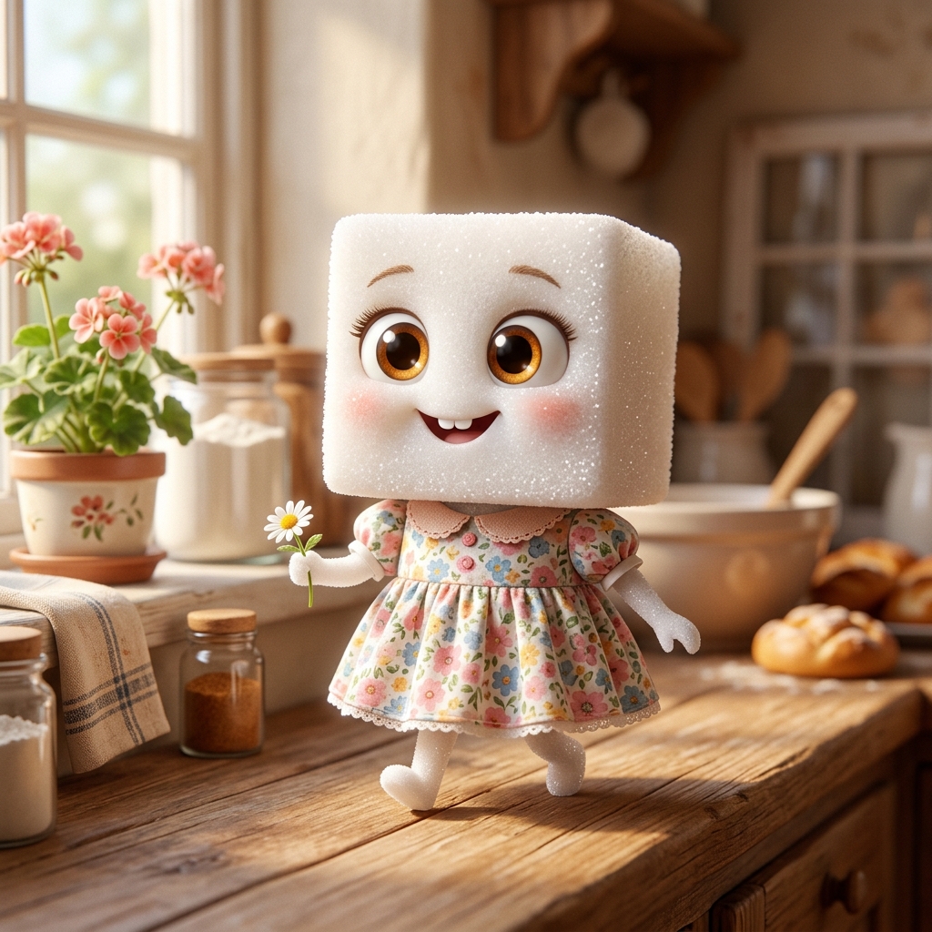 Strong rule: style --- 3D Pixar ---. Strong rule: style --- 3D Pixar ---. A cute, anthropomorphic white sugar cube with big expressive ey...