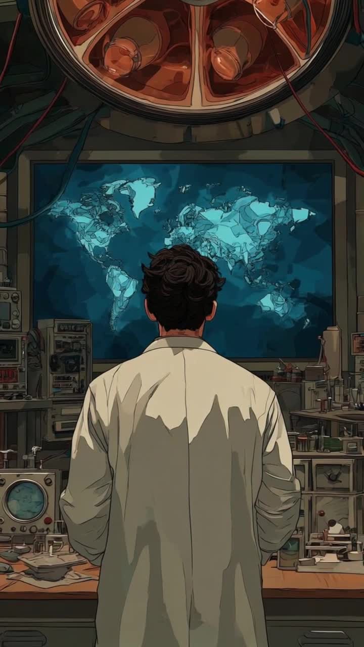 The extremely happy, fluffy brown dog jumps incredibly high with explosive energy, wagging its tail frantically in pure joy. The dog spins around in a rapid 360-degree circle. As it completes the spin and faces the camera again, the distinct white patch of fur on its neck remains perfectly visible and unchanged. Dozens of cute little crabs run in circles around the dog, jumping high and celebra...