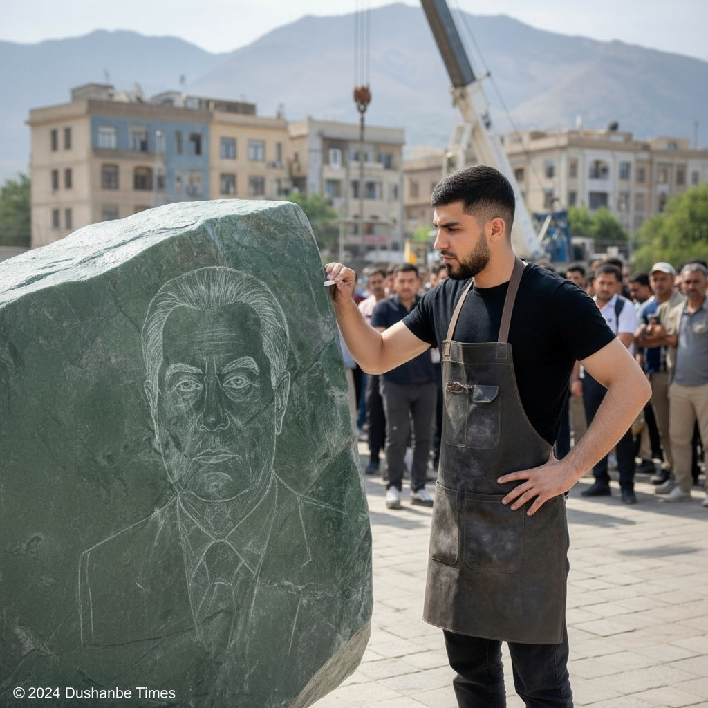 Locked camera. No motion, no zoom, and no perspective change. Keep the map 100% identical, sharp, and in full focus at all times. A realistic мужчина hand with natural светлая кожа skin briefly enters the frame holding a red push pin. The hand pushes the pin tip through the map exactly where it says Самый высокий флаг в центральной азии (Таджикистан), leaving a small hole in the map, then immed...