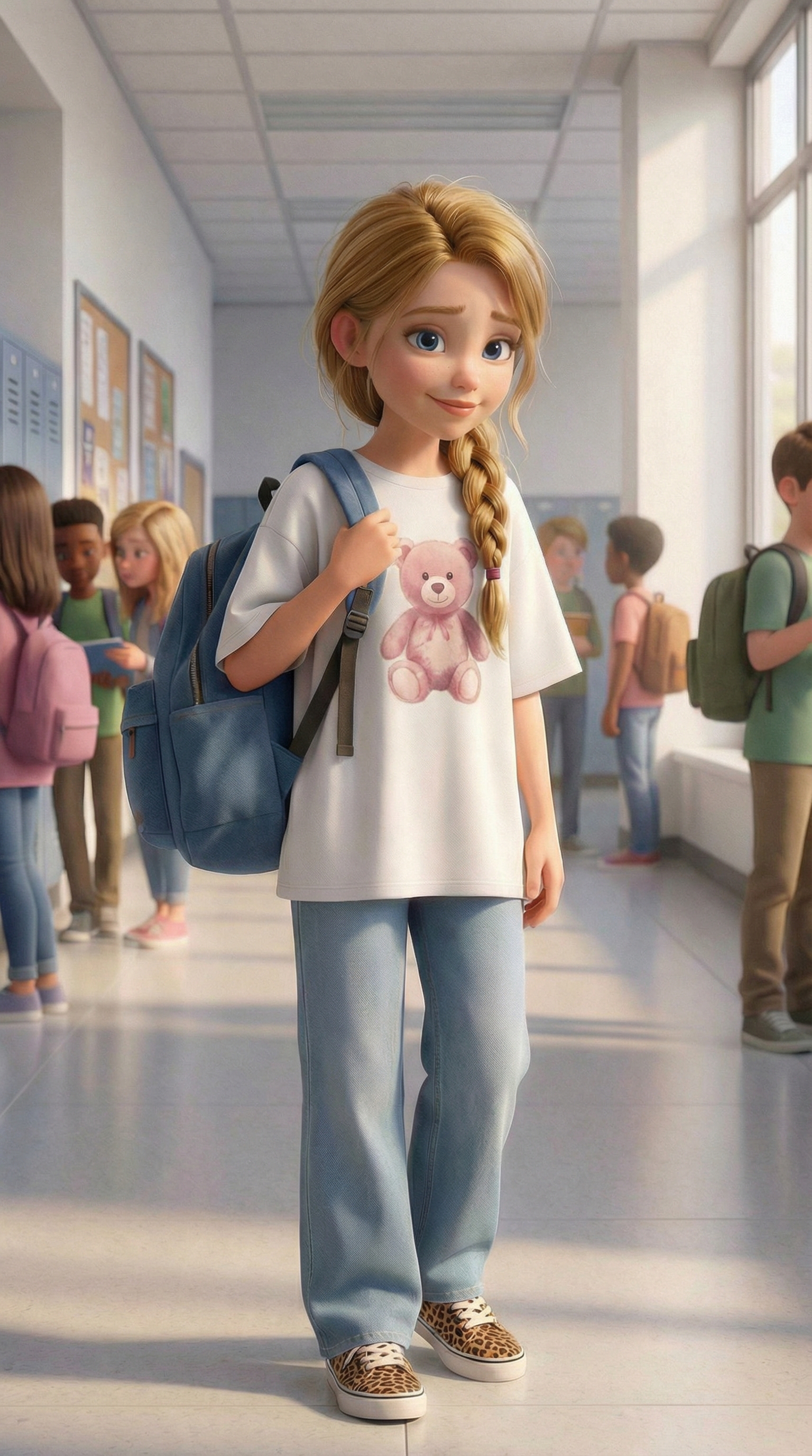 Вика, девочка с фиолетовыми волосами, сидит за Мирой, громко произносит свои слова, чтобы привлечь внимание всего класса. Мира, девочка в белой футболке с мишкой, ее взгляд устремляется в парту. Ее унизили и она сидит грустная. Девочка в клетчатой рубашке не принимает участия в оскорблениях ASMR sound design: emphasize ambient sounds, textures, and satisfying audio details (rustling, tappi...