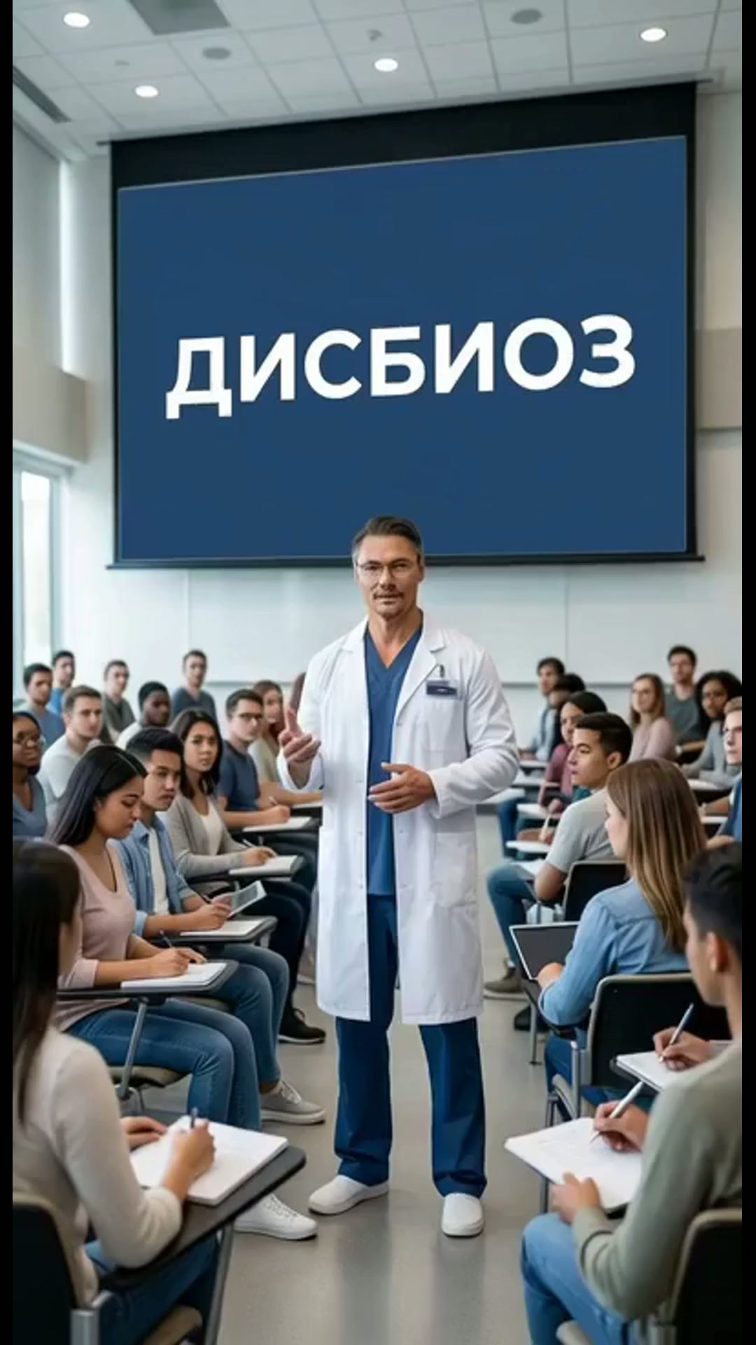 Динамичная смена кадров, показывающая каждую иконку крупным планом по мере произнесения соответствующего слова. Эффект 'pop-up'. On-screen dialogue (characters speak with lip-sync): Андрей Гудвин (voice: Мягкий, размеренный баритон с теплыми интонациями, легкой хрипотцой и спокойной, умиротворяющей энергией.): "Лечение включает восполнение водного баланса, диету 'стол №4', антибиотики, пробиот...
