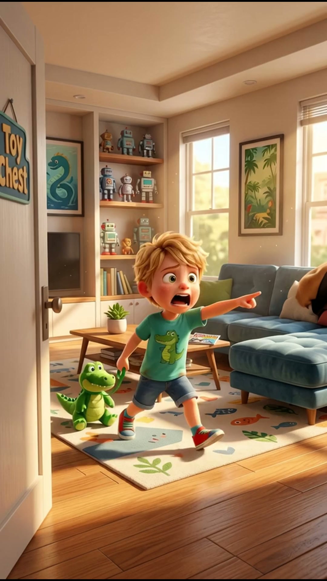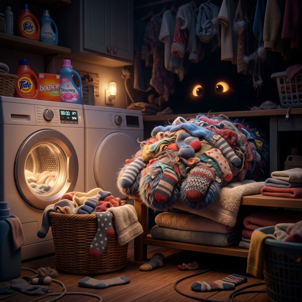 A slow, gentle zoom onto the pristine sock. A final, contented gurgle is heard from the monster, like a burp. The scene fades to black. No background music.