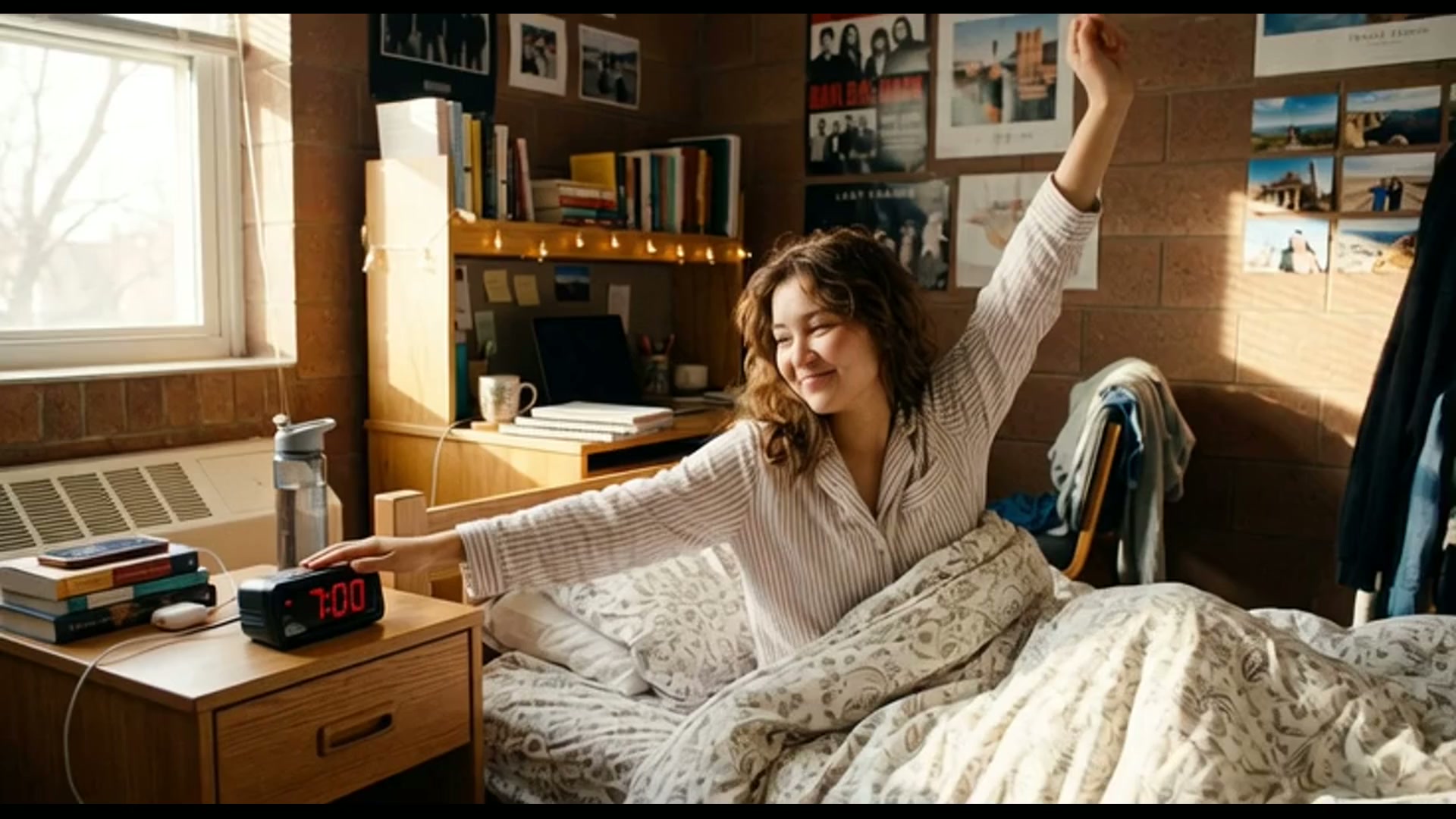 Камера медленно фокусируется на тексте в книге, затем плавно переходит на умиротворенное лицо Аягоз. Она закрывает книгу, кладет ее на тумбочку и выключает свет. Плавное затухание экрана. On-screen dialogue (characters speak with lip-sync): Аягоз (голос за кадром): "И последний штрих — несколько страниц хорошей книги. Это помогает переключиться и спокойно заснуть." No background music.