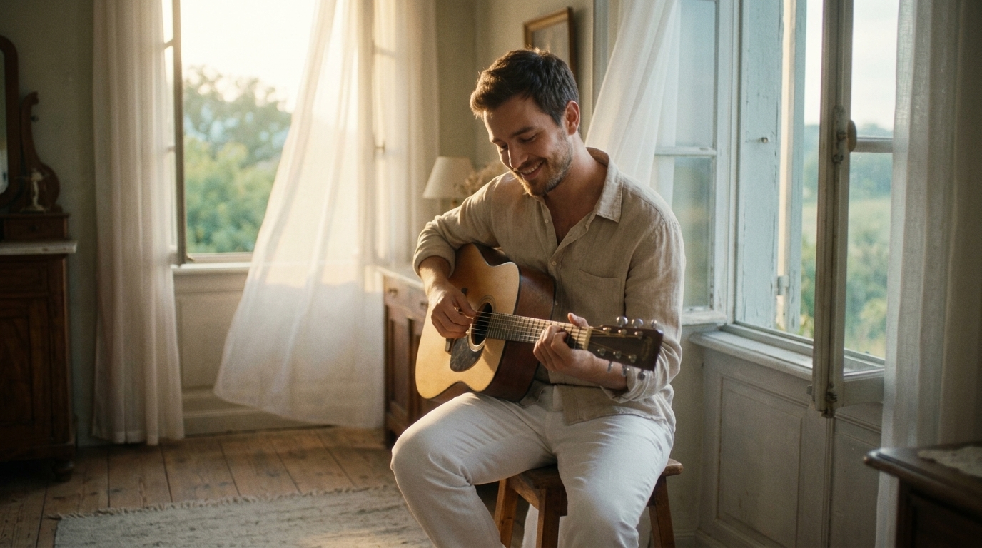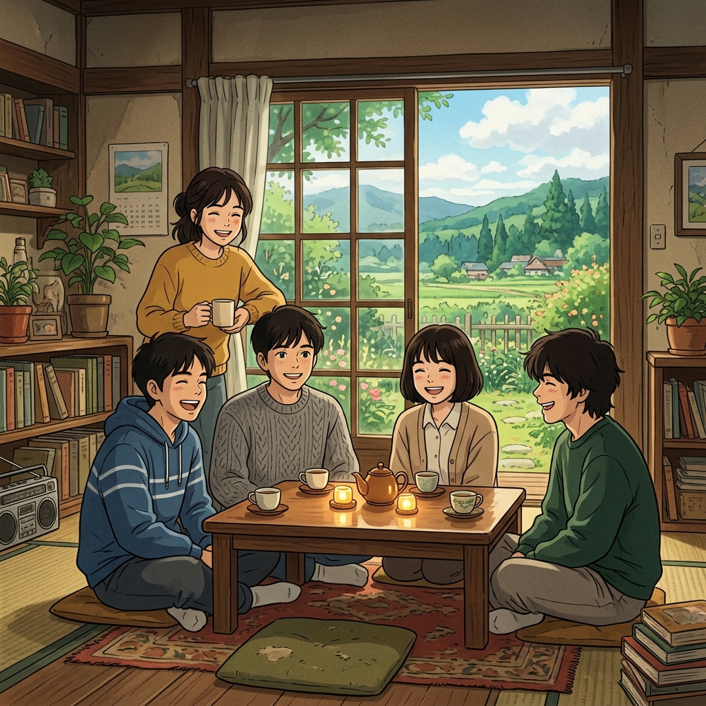 Камера медленно панорамирует по городу и плавно наезжает на Имана, стоящего на перроне. Легкий снегопад. Движение очень плавное, создающее умиротворенную атмосферу. On-screen dialogue (characters speak with lip-sync): Рассказчик: "Иногда, чтобы найти свое будущее, нужно вернуться к истокам..." No background music.