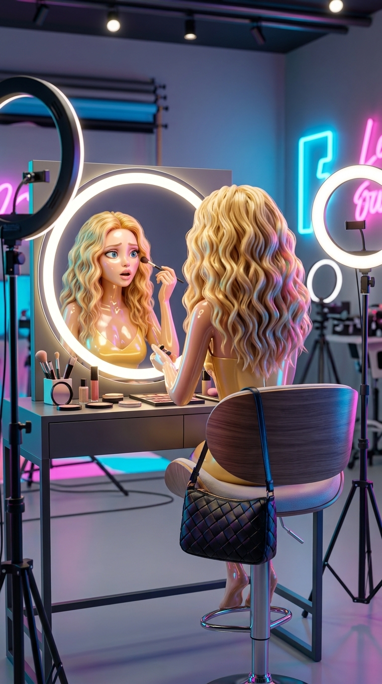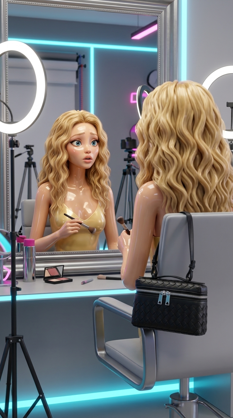Мия медленно проводит рукой по фактурной поверхности черной сумки, её пальцы ощущают мягкость кожи. Она поднимает взгляд и улыбается в камеру, её глаза сияют. Камера плавно наезжает, переходя от среднего плана к крупному. В воздухе медленно кружатся пылинки в лучах света, создавая ощущение живого присутствия и нежности. On-screen dialogue (characters speak with lip-sync): Мия (voice: Высокий, ...